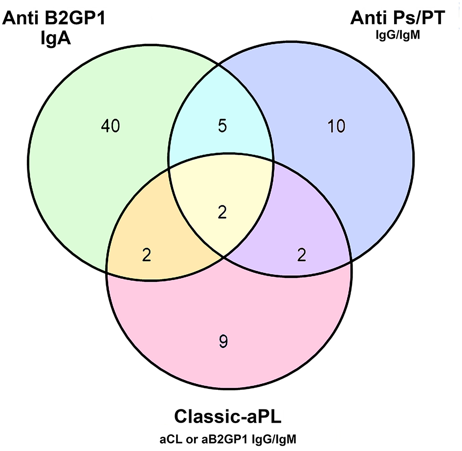 Extra-criteria aPL: aPL not included in the updated APS classification criteria (IgA aβ2GPI and aPS/PT antibodies of IgG and IgM isotypes).