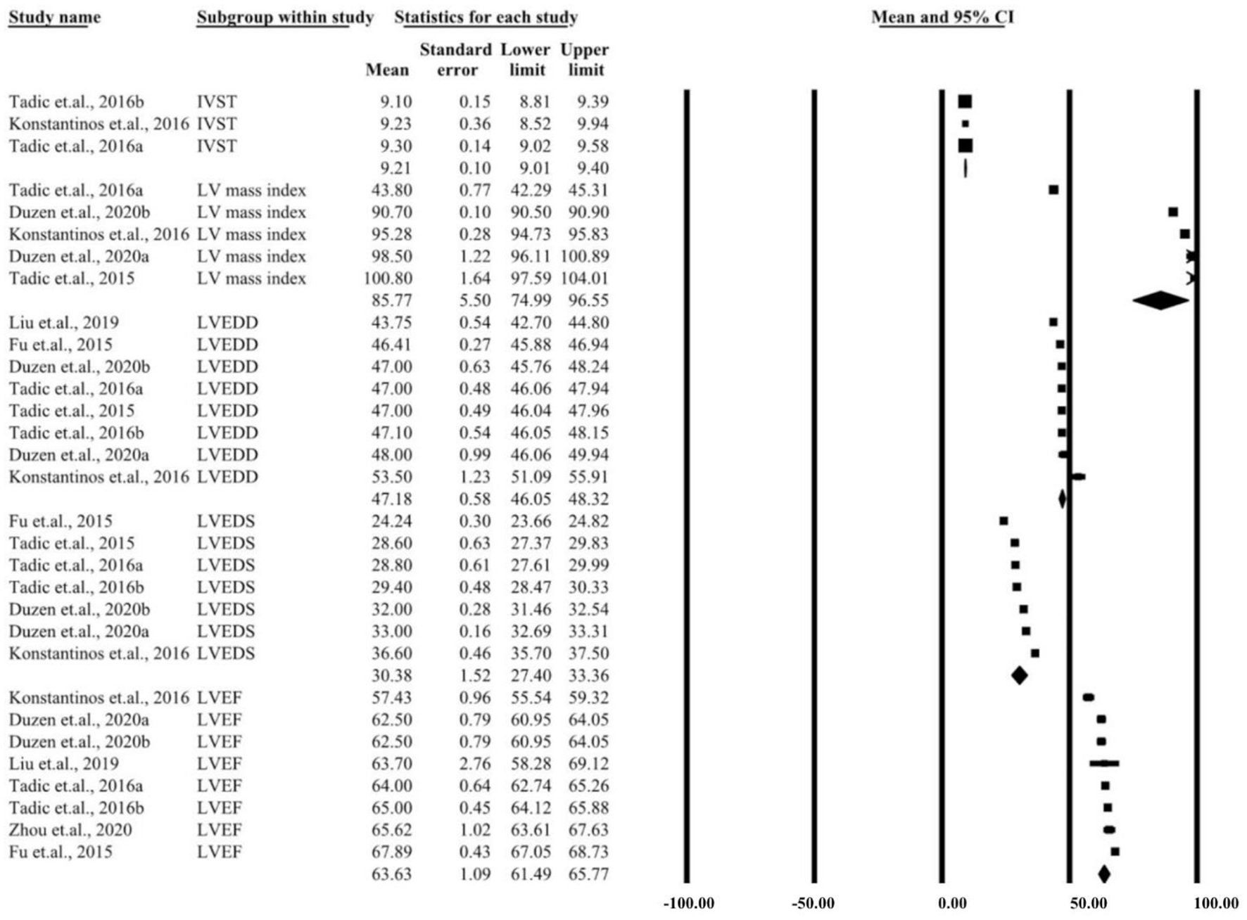 Although all included studies were of high quality, it is necessary to explore the limitations of the present meta-analysis when interpreting the results. First, all studies were case-control studies, and the nature of the study design could limit the ability to estimate causality and decrease the generalizability of the results. Second, half of the studies were conducted in China. These results could be affected by the environment, medical level, and genetic factors, which could only partially annotate the relationship, weakening the representativeness with regard to the target population. Moreover, due to the small size of study participants and various inclusion criteria, the heterogeneity across the studies was increased. Third, various ultrasound devices were used to assess the parameters of LV, and it might not be possible to ensure that all parameters were kept constant. This could be another cause of heterogeneity. Fourth, various studies have detected different parameters of LV, and only a few studies combined most of the pooled parameters, which also added to the heterogeneity. Finally, potential language bias could exist because our literature search only considered articles published in English or Chinese.