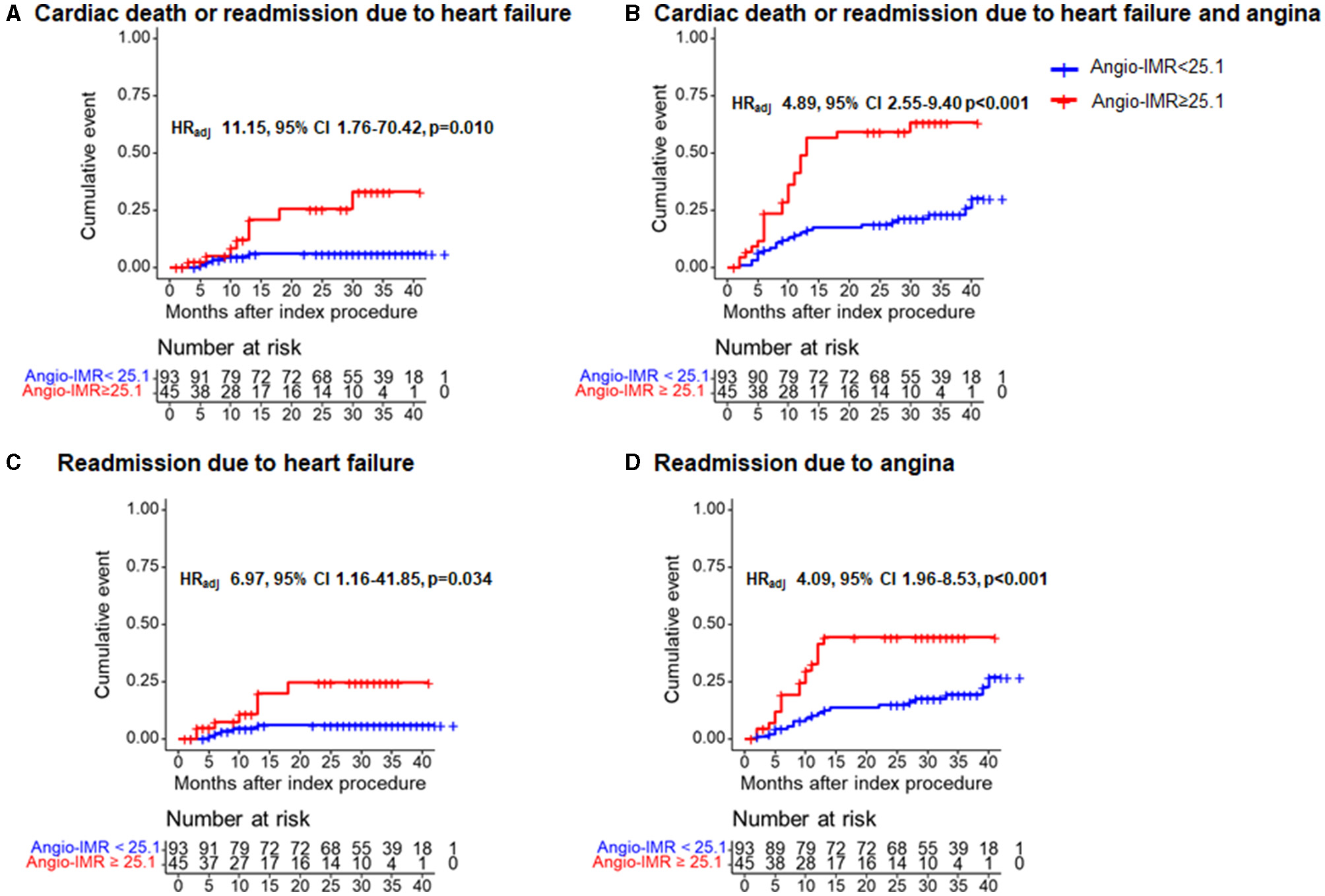 Conclusions: Angio-IMR showed a moderate correlation with HMR and high accuracy to predict microcirculatory dysfunction. Angio-IMR measured after PCI predicts the risk of cardiac death or readmission due to heart failure in patients with CAD.