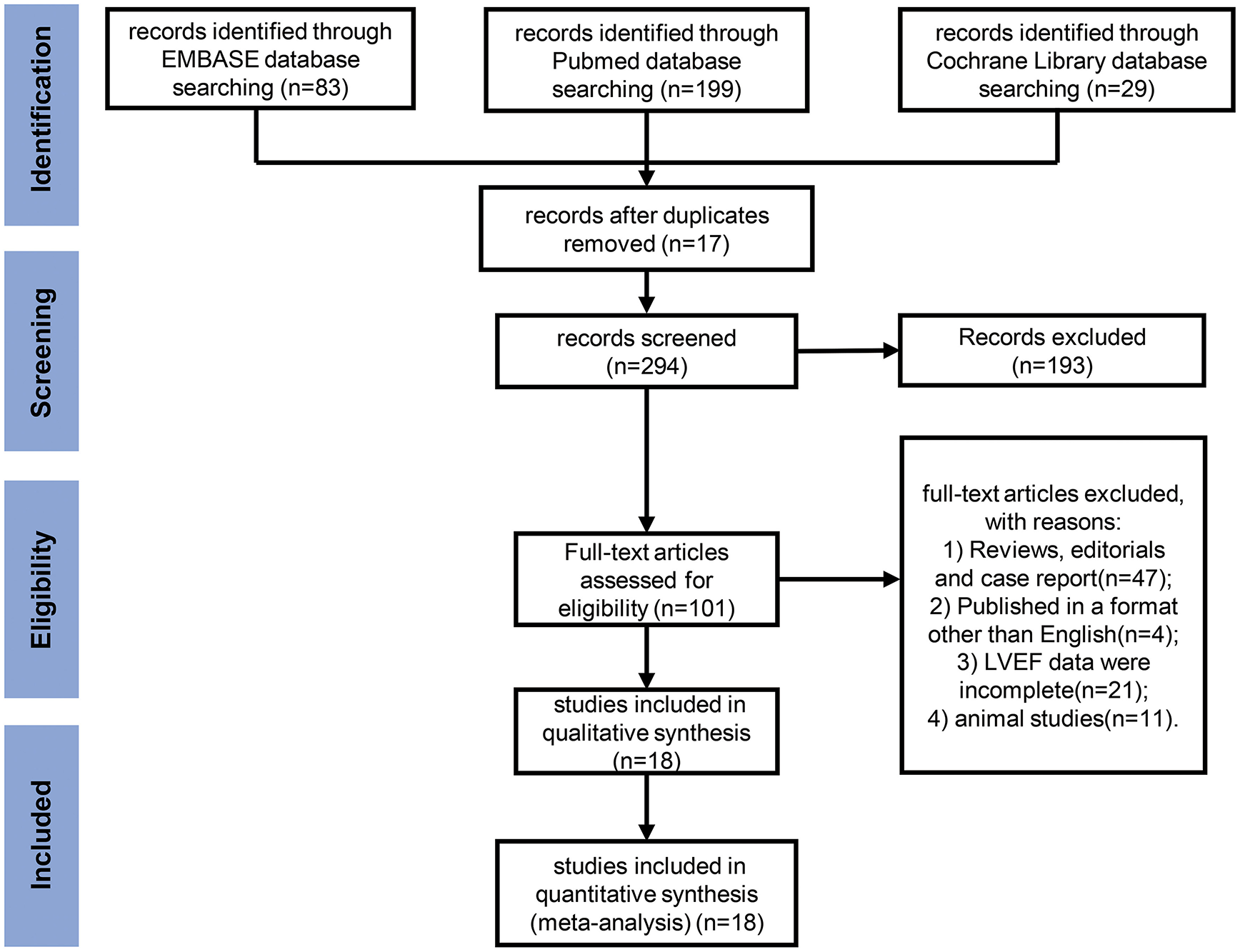 The literature search, study selection, study appraisal, and data extraction were pre-defined in the protocol and were independently conducted by two investigators (SQ and TZ). Data were extracted and included study setting, cohort descriptors, prevalence of cardiotoxicity, baseline and follow-up data for LVEF, and diagnostic criteria. Any discrepancies were resolved by consensus.