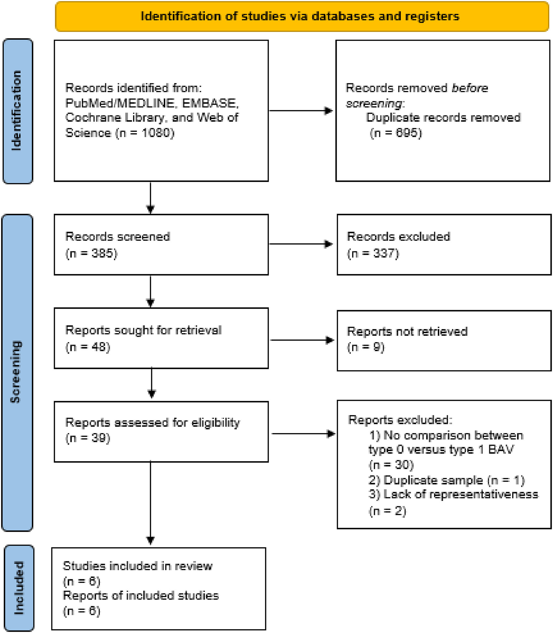 However, BAV can present different morphologies. According to the Sievers classification, the BAV phenotypes are categorized by the raphe number (0, 1, and 2), with BAV type 1 as the most common (2, 7). The Sievers type 0 BAV morphology, with the two commissures opening in a significant elliptical fashion, was under-represented (~10%) in the previous multicenter analyses (8–10). Thus, the questions regarding the procedural and mid-term outcomes of TAVI in type 0 BAV remain unanswered. Therefore, in the present systematic review and meta-analysis, we aimed to investigate whether BAV morphology (e.g., Sievers type 0 vs. type 1) can affect the TAVI results.