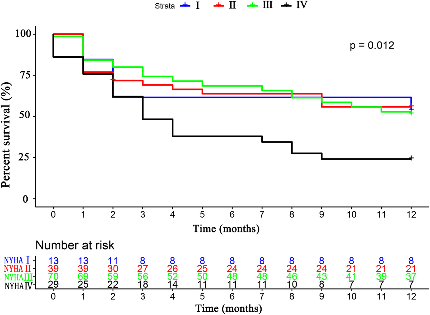 | NYHA IV | 11 (21.6%) | 3 (10.0%) | 5 (21.4%) | |