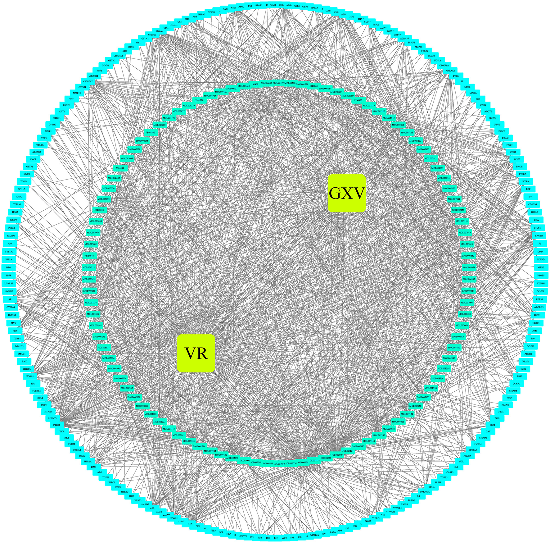 We obtained 119 active compounds and corresponding 196 targets for GXV from our previous study (17). Moreover, we supplemented 77 targets for 15 effective components in GXV. After integrating all the targets, we obtained 251 GXV-related targets. We got 11,425 known therapeutic targets for VR from our previous study (17). A total of 9,727 targets were identified as stress-related oxidative.