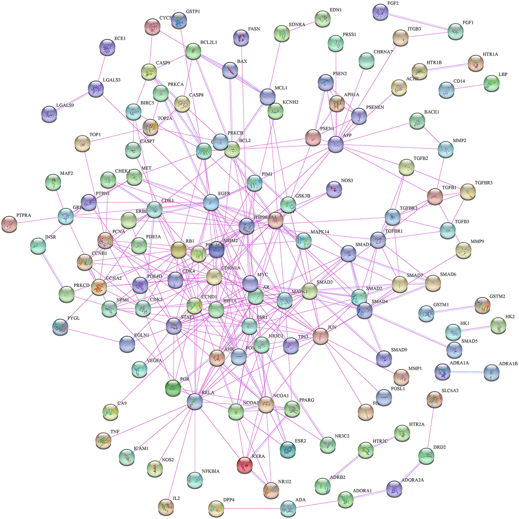 | 3 | 4.750 | 9 | 38 | SMAD2, MYC, SMAD4, TGFBR1, SMAD7, MAPK1, STAT3, ESR1, JUN |