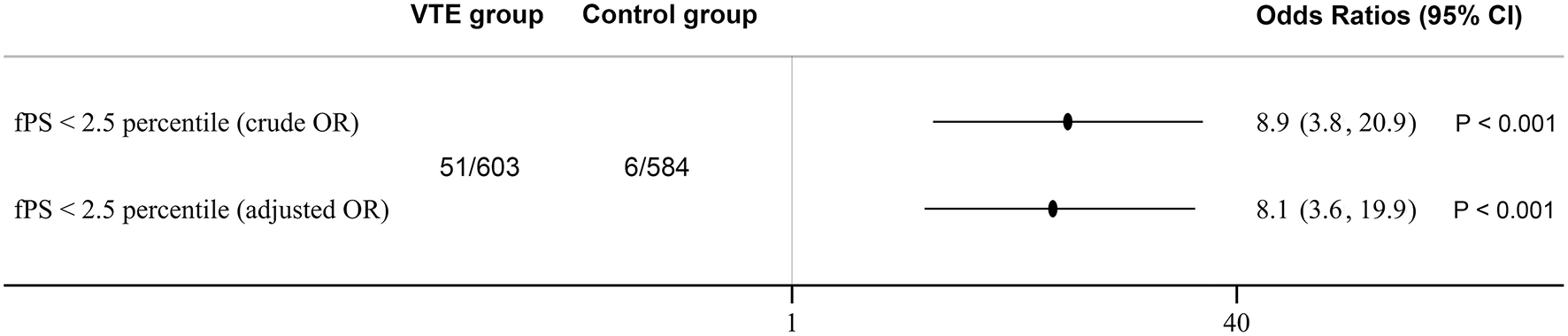 Protein S deficiency and risk of venous thromboembolism. Odds Ratios were adjusted for age and gender. 95% CI indicates 95% confidence intervals.