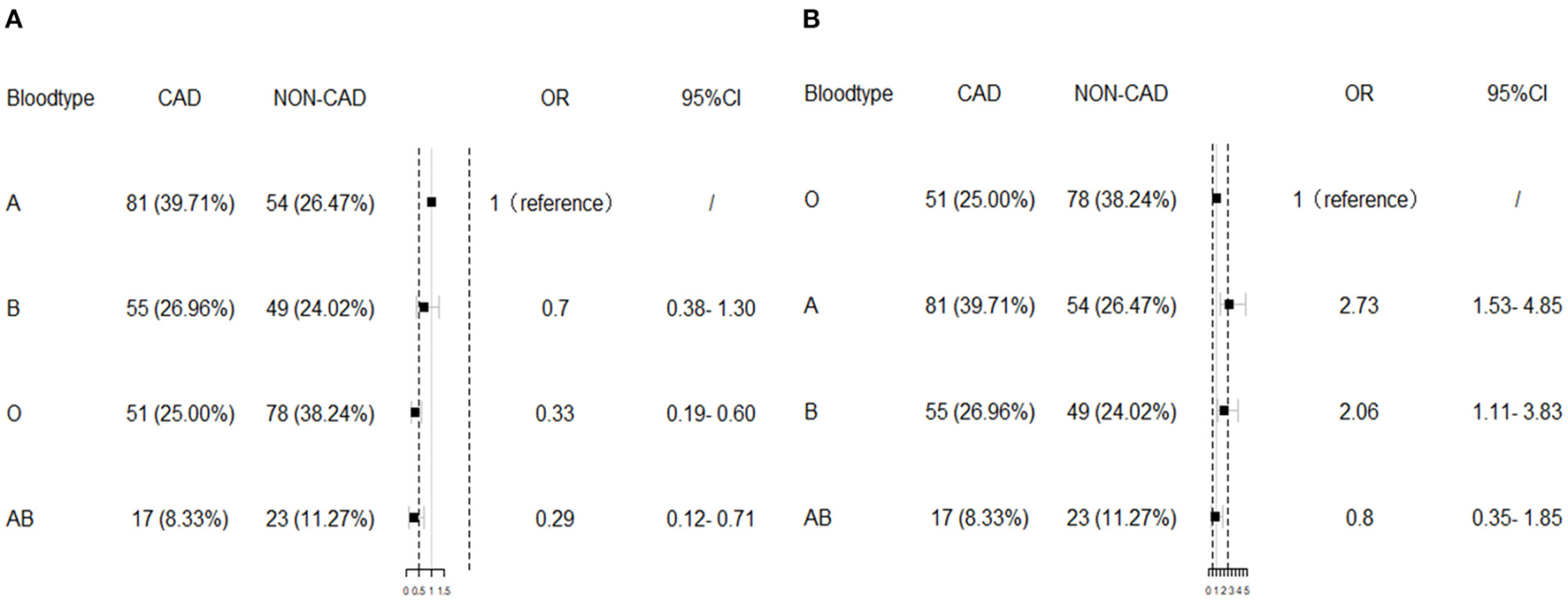 | Blood type | CAD | Non-CAD | Adjusted | |||||