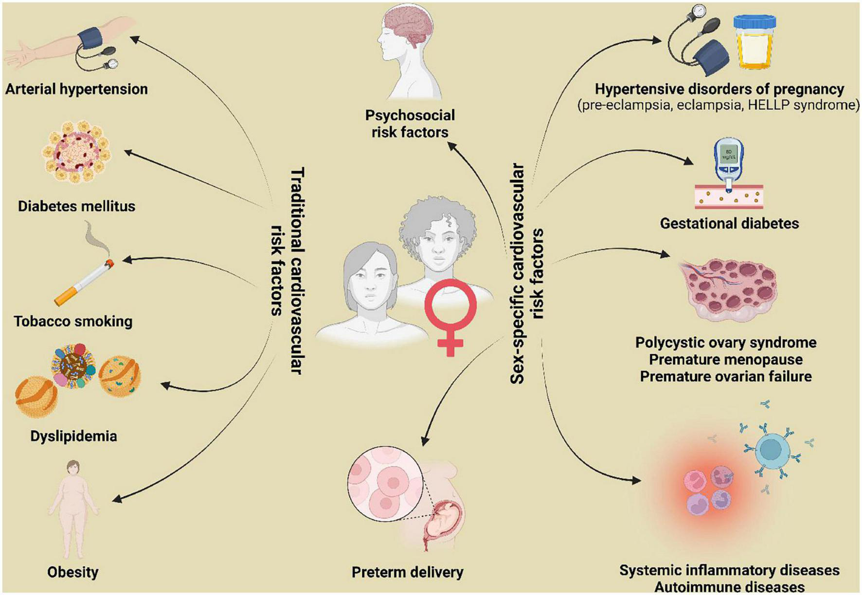 Traditional and sex-specific cardiovascular risk factors. HELLP, hemolysis, elevated liver enzymes and low platelets.