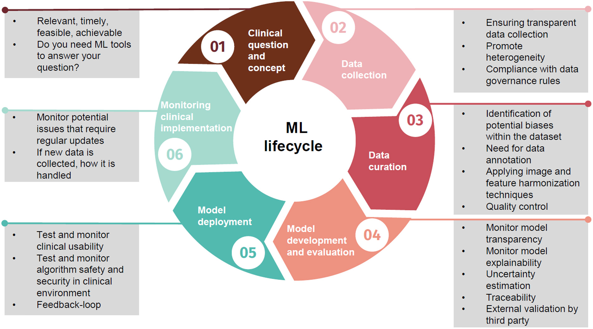 Lekadir et al. identified the main guiding principles for fairness in medical imaging AI (12). Actions to promote AI fairness are not one step but should be implemented throughout the AI lifecycle. Here we summarize the main recommendations from a clinical perspective: