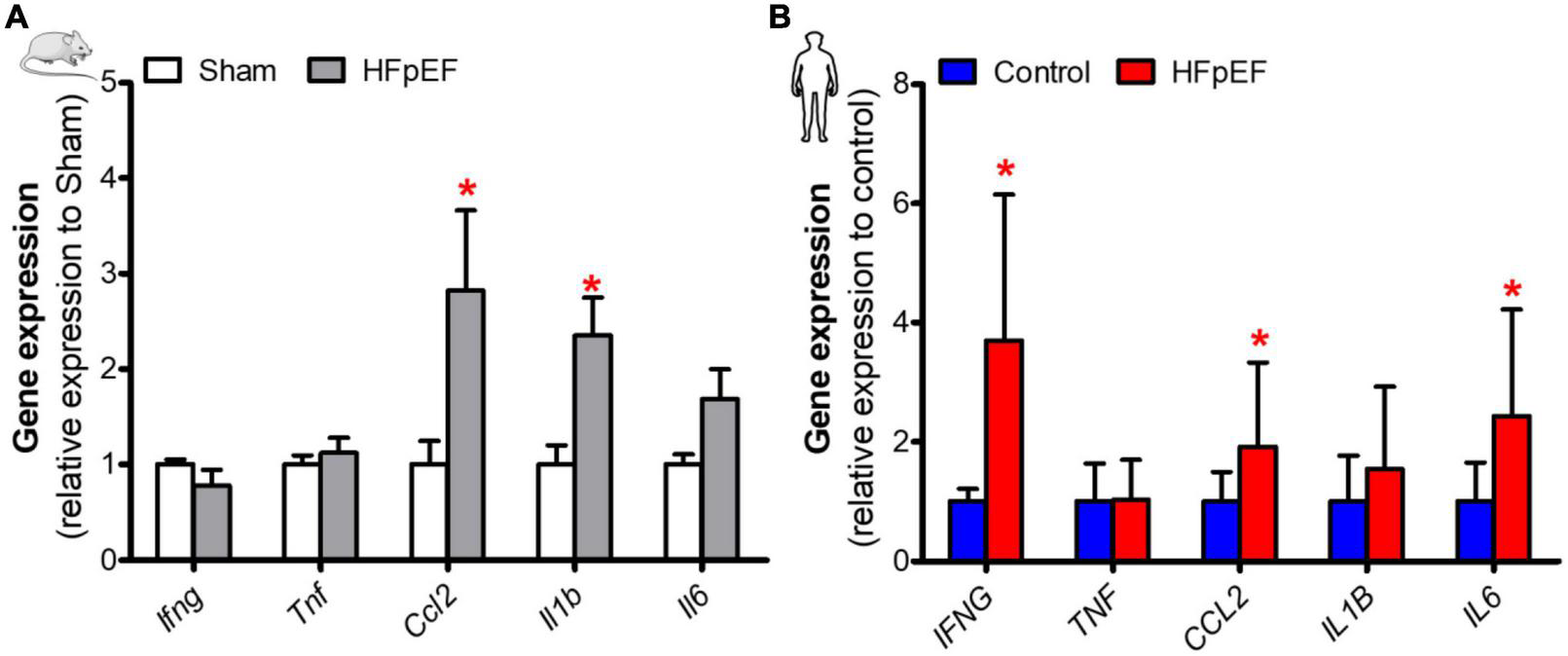 All statistical analyses were performed using GraphPad Prism software. Normal distribution of data was verified by D’Agostino & Pearson omnibus normality test. Differences between the two groups were tested by unpaired t test or the Mann-Whitney U test, as dictated by the distribution. Data was expressed as mean ± standard error of the mean (SEM) for mice, mean ± standard deviation (SD) or median (interquartile range) for humans. A P-value < 0.05 was considered as statistically significant. For details of the power calculations for mice and human HFpEF cohorts, see the Supplementary material section for extended methods.
