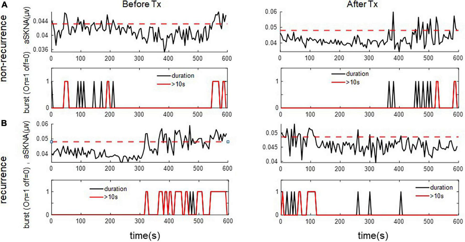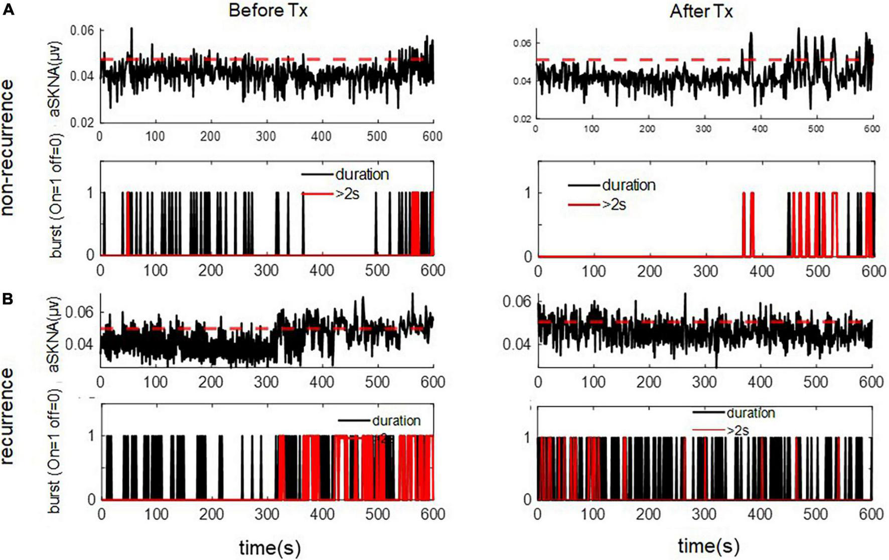 Differences between short-term sympathetic nerve activity in patients with and without recurrence