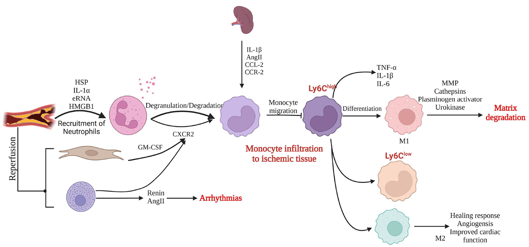 Nahrendorf M Swirski FK Aikawa E Stangenberg L Wurdinger T Figueiredo JL et al . The healing myocardium sequentially mobilizes two monocyte subsets with divergent and complementary functions. J Exp Med. (2007) 204:3037–47. 10.1084/jem.20070885