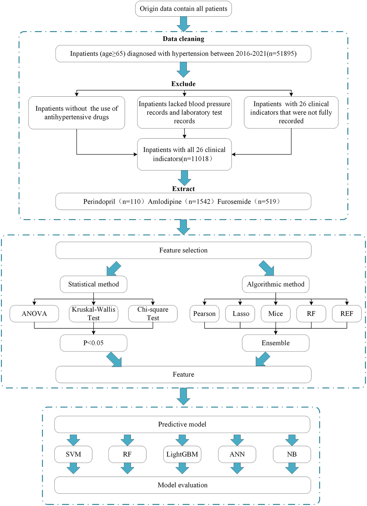 Data were included from 2016.12 to 2021.12 for inpatients aged ≥65 years who had registered antihypertensive drugs in the medication information and whose diagnosis of “primary hypertension” was recorded in the discharge report. Although the MeduCloud data platform documented the antihypertensive medicine usage of many outpatients, there was insufficient clinical test data to match the requirements of this research; thus, only inpatients were included.