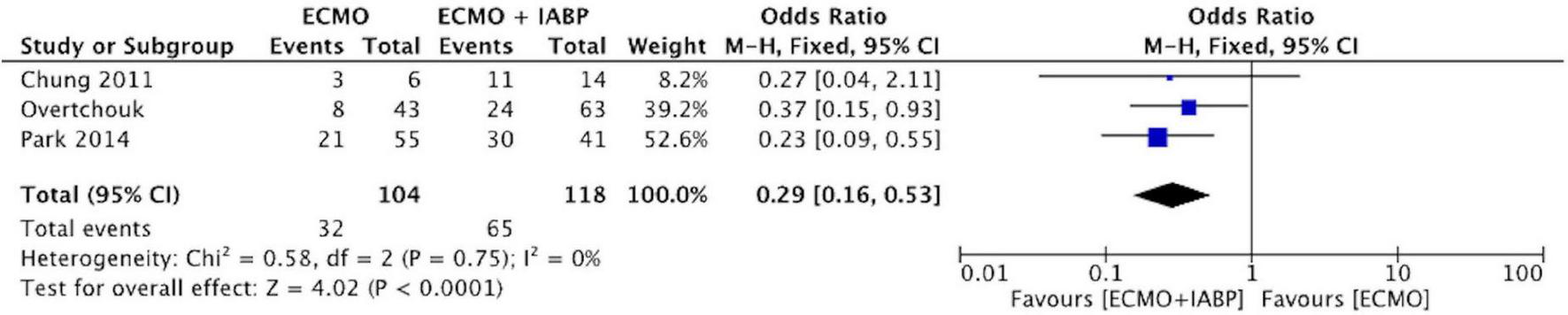 The objective of this meta-analysis was to assess the effect of VA-ECMO + IABP vs. VA-ECMO treatment on the mortality of patients with CS due to AMI.