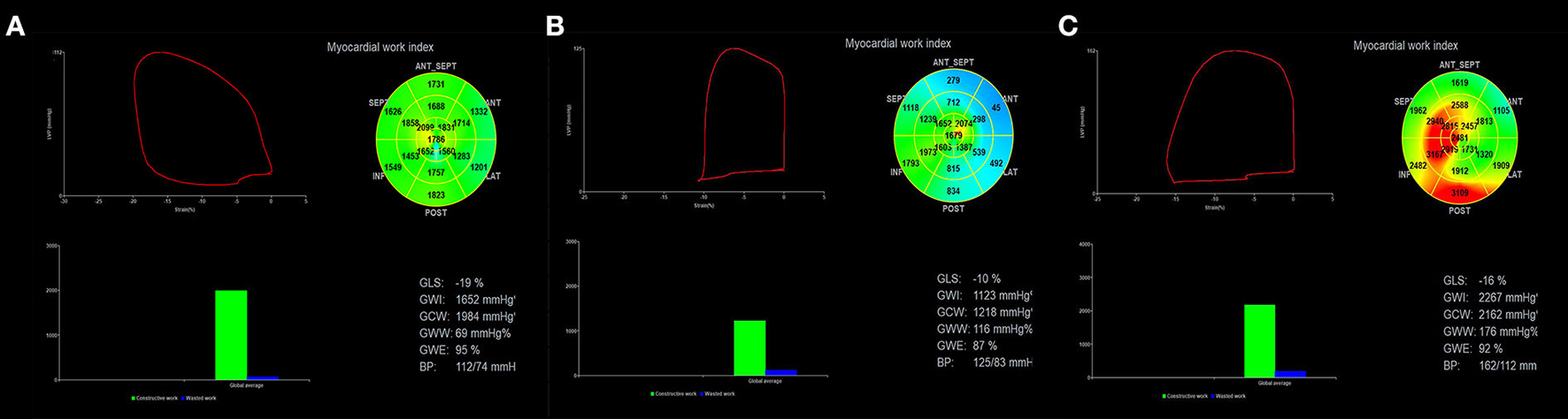 GLS, global longitudinal strain; GWI, global work index; GCW, global constructive work; GWW, global wasted work; GWE, global work efficiency; Data are expressed as mean ± SD.