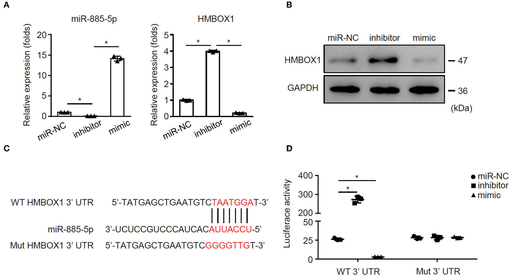 miR-885-5p Suppressed HMBOX1 via Binding to 3′UTR