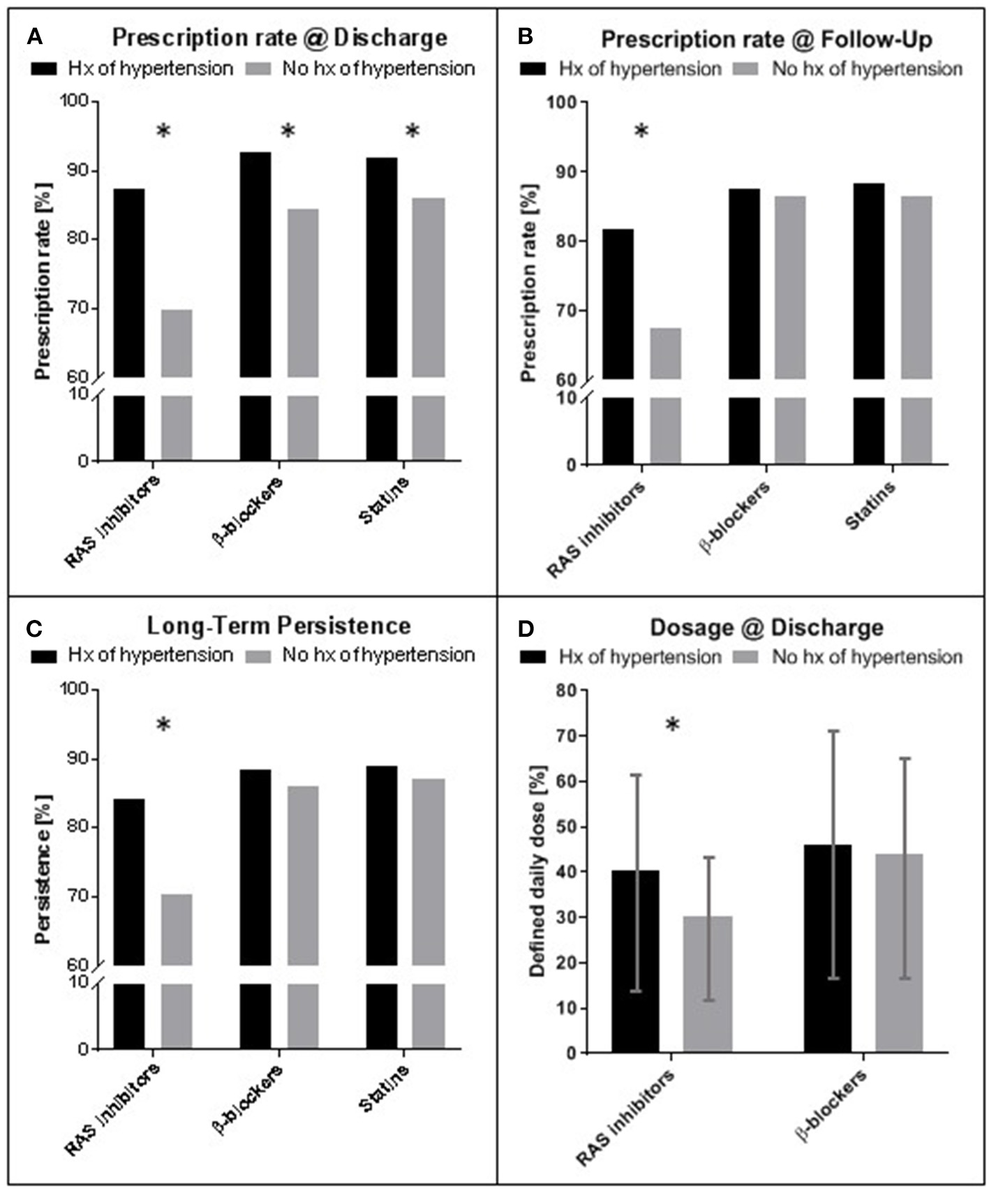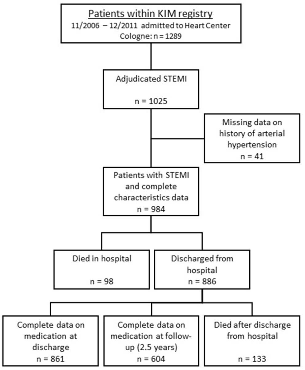 We hypothesize that patients with a history of arterial hypertension at the time of hospital admission have better clinical condition and tolerance and therefore higher prescription rates and dosage for β-blockers and RAS inhibitors in secondary prevention following STEMI compared to normotensive patients. These differences in medication may directly influence short- and long-term outcome, and ultimately mortality.
