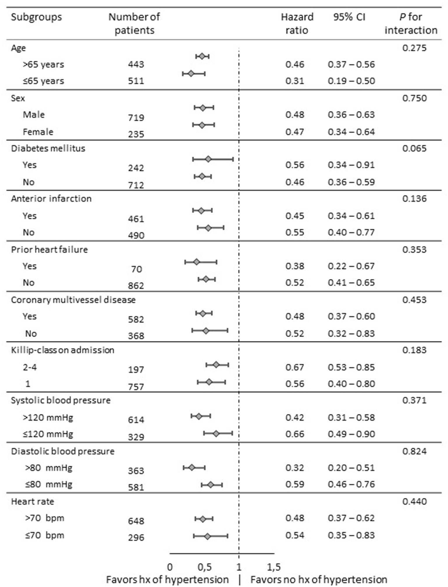 P-value hx vs. no hx of hypertension |