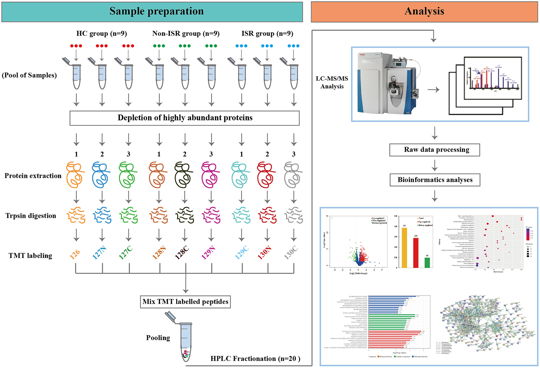 Scheme of the experimental design based on tandem mass tag (TMT) labeling combined with liquid chromatography and tandem mass spectrometry (LC-MS/MS). ISR, in-stent restenosis; HC, healthy controls.