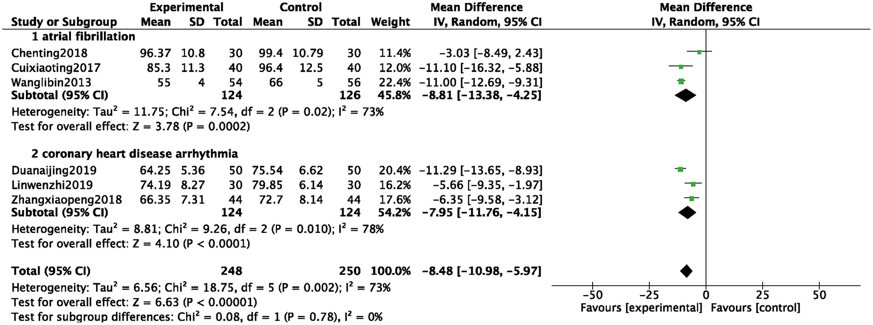 | Wuyanpeng (34) | 4 W | 54 | 54 | 65.22 ± 3.12 | 65.26 ± 3.14 | 9.05 ± 1.51 Y | 9.06 ± 1.54 Y | Metoprolol 23.75–47.5 mg, qd | ZGCD bid + Metoprolol 23.75–47.5 mg, qd | ①③ |