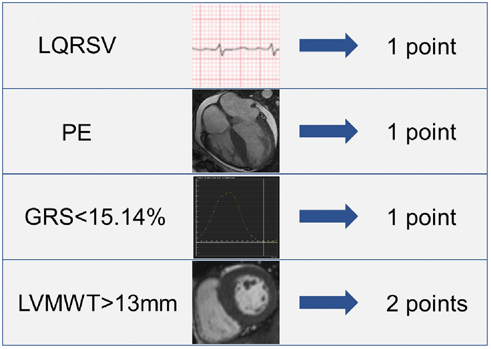Clinical data nearest to the CMR scan were collected through our electric history system, including baseline characteristics, lab results and 12-lead electrocardiogram (ECG) results. Low electrocardiographic QRS voltages (LQRSV) was defined as QRS amplitude of ≤10 mm in all the precordial leads or ≤5 mm in all standard limb leads (16). Left ventricular maximum wall thickness (LVMWT) and left atrial antero-posterior diameter (LAAPD) were measured on CMR image.