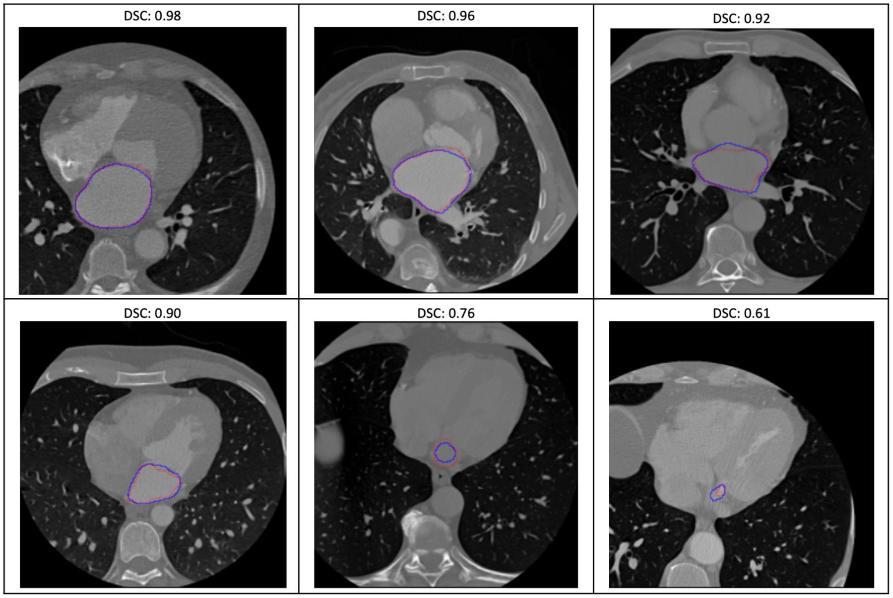 Cardiac computed tomography (CCT) is commonly used to evaluate pulmonary vein (PV) anatomy and left atrial (LA) appendage thrombus prior to catheter ablation (CA). These images can also be used for full volumetric LA measurement, as there is strong evidence of the association of LA volumes (LAV) with atrial fibrillation (AF) recurrence after CA (1, 2). Evidence also exists that suggests an association between LAV and successful PV isolation in CA of AF (3). The anatomic structure of LA is varied and complex, limiting precision of echocardiographic LAV measurements and making manual contouring and volume measurements of CCT time-consuming and user-dependent.