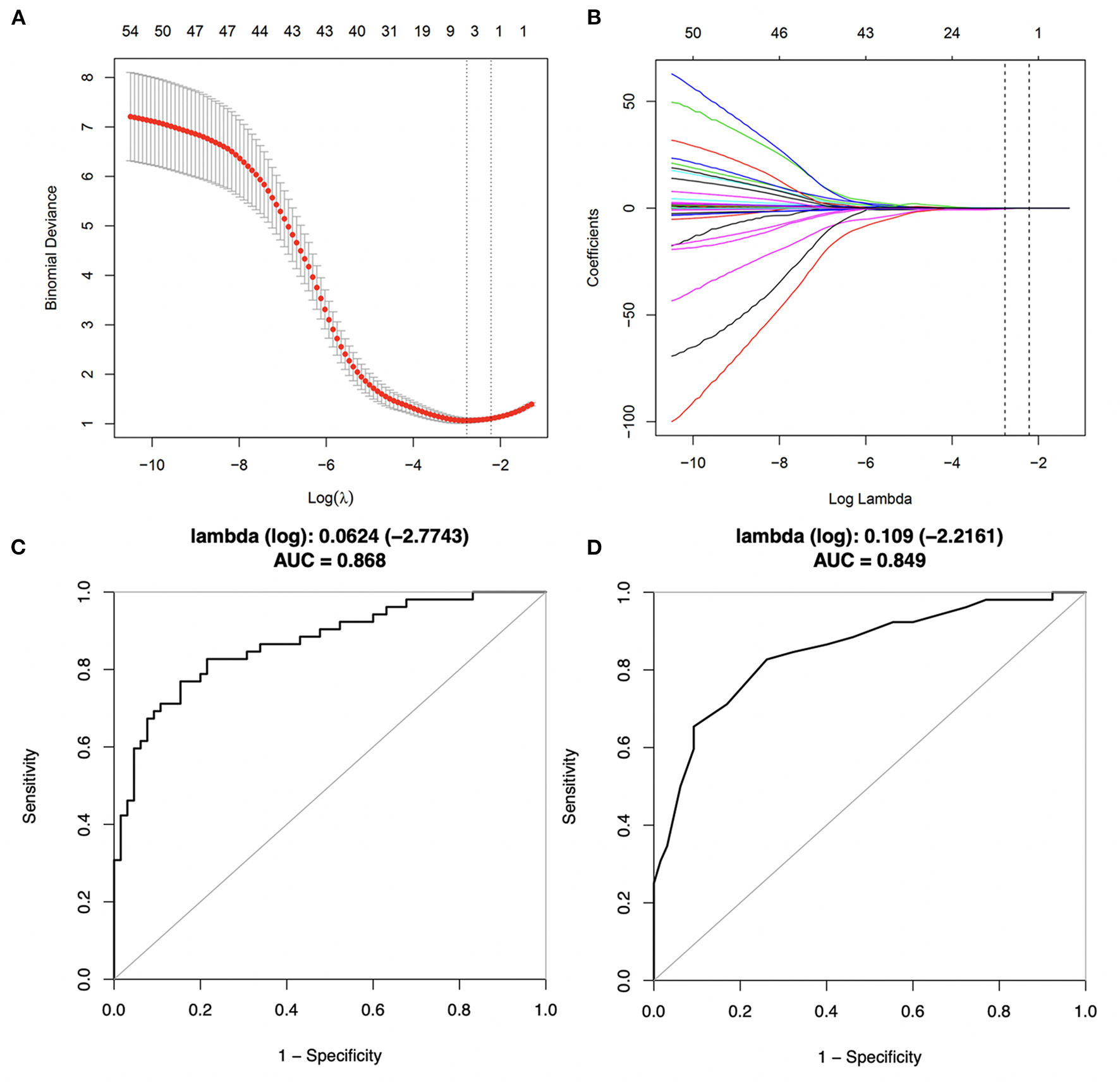 All statistical analyses were performed on the statistical package for the social sciences (SPSS) statistical software (IBM Co., Armonk, NY, USA) version 26.0, and the R software version 3.6.3 (R Development Core Team). The Prism 9.1.1 software package (GraphPad Prism, San Diego, CA, USA) was used for data presentation. Inter-rater agreement was estimated as Intra-class correlation coefficients (ICC). The least absolute shrinkage and selection operator (LASSO) regression with 10-fold cross-validation was conducted to screen candidate variables with minimum lambda (model 1) and optimal lambda (model 2) to identify the predictors for ISR. The best predictive model was identified by calculating the area under the curve (AUC) of the receiver operative characteristic (ROC) curves plotted for each model. Binary logistic regression analysis determined the association of predictive characteristics with ISR. The Pearson correlation coefficient was calculated to evaluate the relationship between ISR severity and peri-stent FAI values. ROC analysis was also performed to assess the predictive value of selected variables in the diagnosis of ISR and the diagnostic efficacy of peri-stent FAI value for the three major coronary subgroups. A p-value of < 0.05 was deemed statistically significant for all statistical tests.