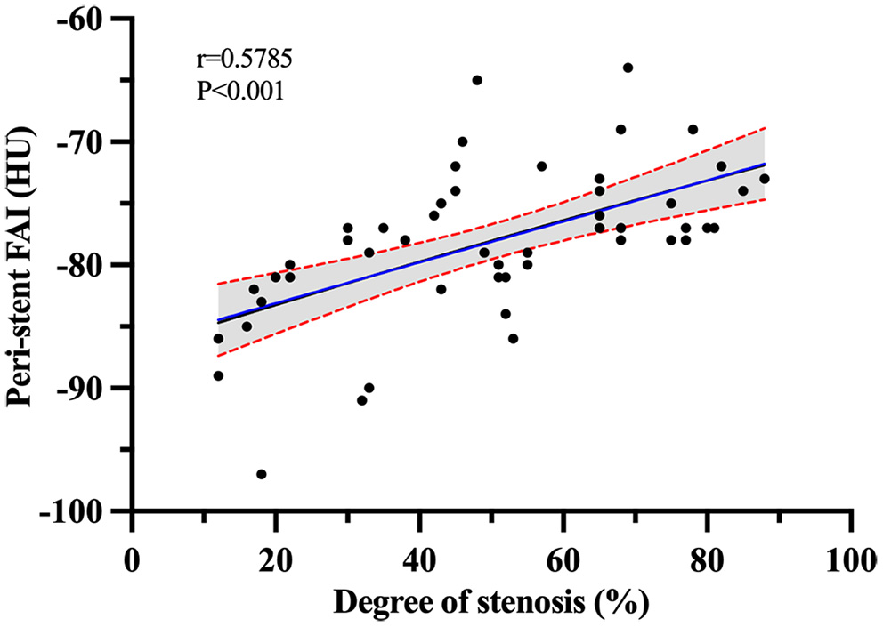 Therefore, this study aimed to investigate the correlation between peri-stent FAI derived from CCTA using a DL-based method with ISR after PCI. Furthermore, we also examine the feasibility of using peri-stent FAI as an independent predictor of ISR.