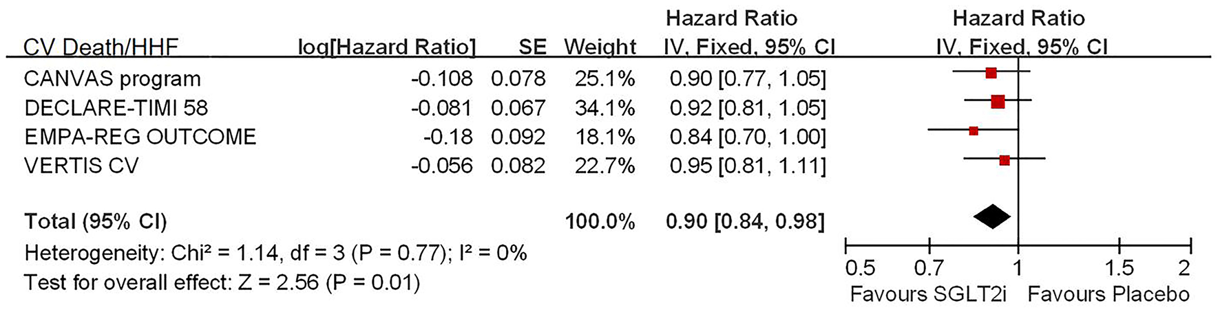 Several limitations should be acknowledged. First, the exact inclusion criteria (Supplementary File 1) and definitions of endpoints varied among the included trials, but only slightly. Second, limited by the availability of data, the definition of HF was not specified. Classification of HF (preserved or reduced HF) may influence the final outcome. Third, due to the lack of racial data, the analysis of CV risk factor of ethnicity may not be performed. Fourth, our study mainly focused on the CV outcomes, but did not present the adverse outcomes such as urinary tract infections, female genital mycotic infections, and dyslipidemia. Sixth, there may be a possible interference in the outcomes by concomitant therapeutic treatments in terms of pharmacokinetic and/or pharmacodynamic interaction. Further research into this issue is expected.