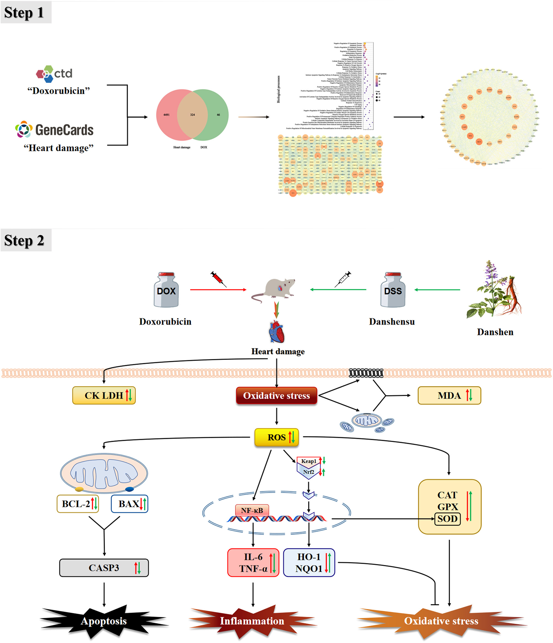 According to the existing reports on DOX-induced cardiotoxicity, this study utilized a network pharmacology approach to identify key targets, confirm the preventive effects of DSS in experiments and elucidate the mechanism of action, providing ideas for further experiments.