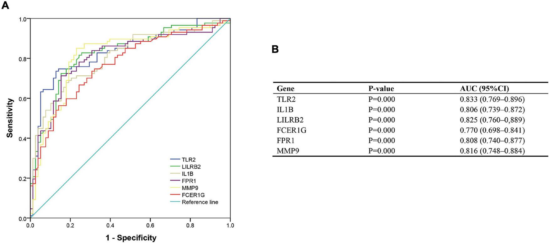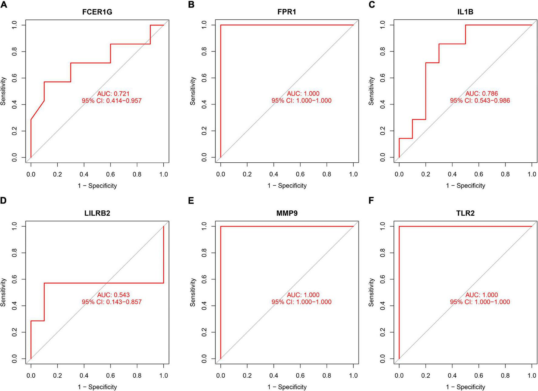 TLR2, IL1B, LILRB2, FCER1G, FPR1, and MMP9 are involved in the process of AMI, which can be used as molecular biomarkers for the screening and diagnosis of AMI. In addition, the immune system plays a vital role in the occurrence and progression of AMI.