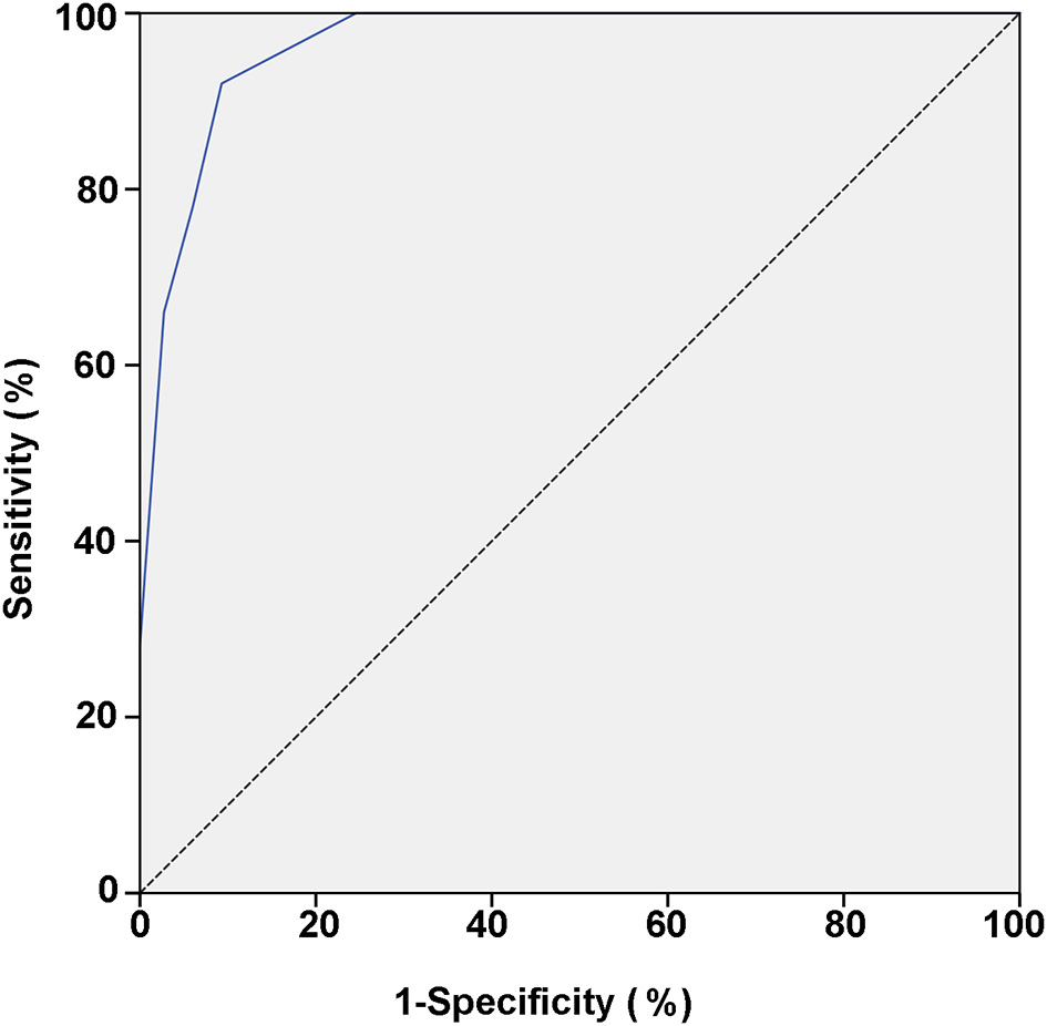 The power for differential diagnosis of the total score based on this model was assessed by the ROC curve. As a result, the area under the curve of the ROC was 0.965 (95% confidence interval: 0.945–0.986, p < 0.01). When the total score ≥5 points was used as the cut-off value for initial differentiation between pediatric PPS and VVS, its sensitivity was 92.0% and specificity was 90.7% for the diagnosis of PPS (Table 4; Figure 1).