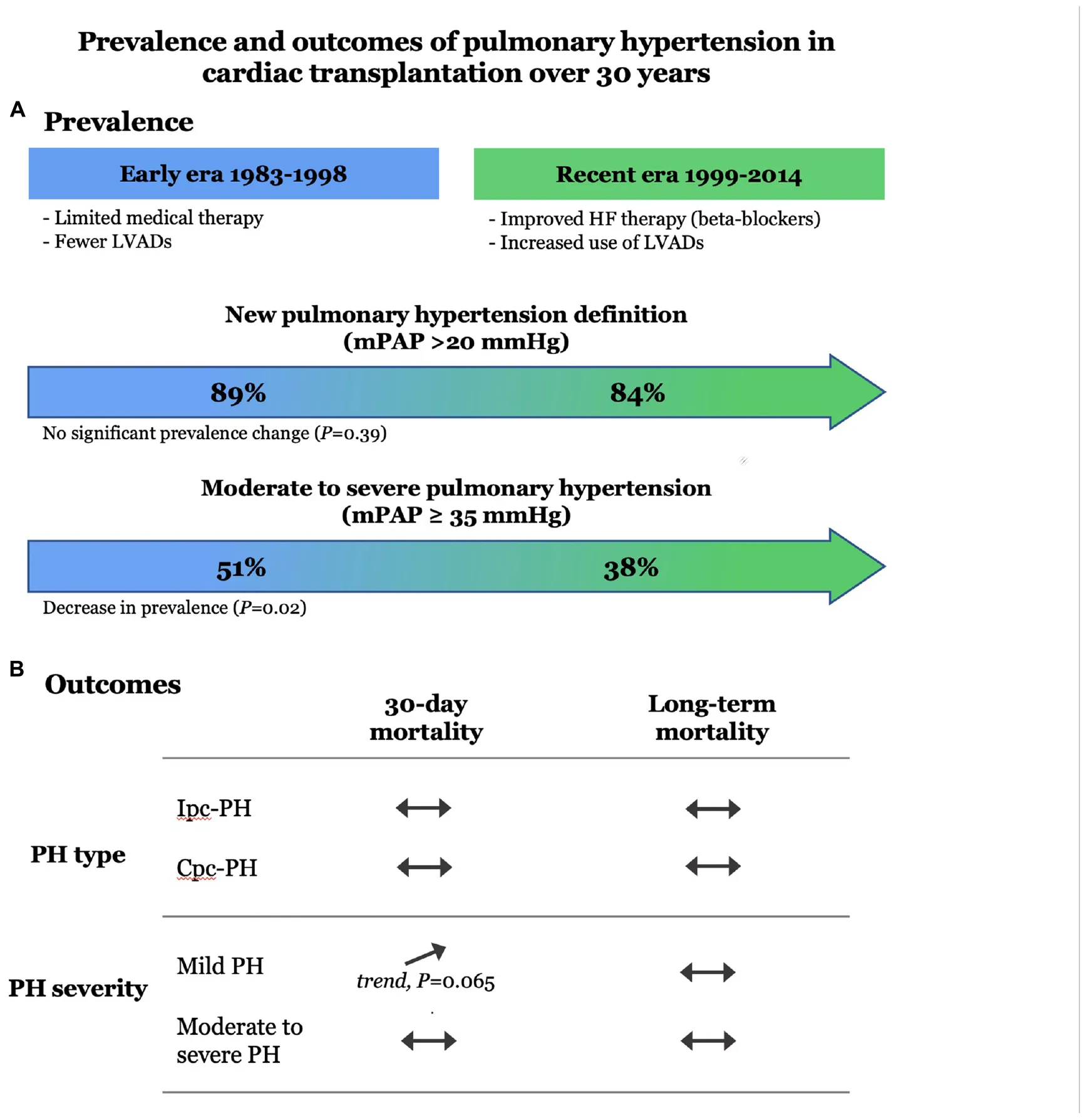 Prevalence and outcomes of group 2 PH in cardiac transplant recipients over 30 years.