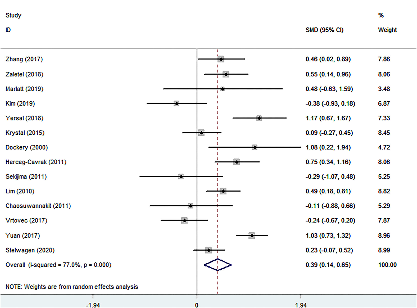| All | 14 | 0.392 (0.136 to 0.647) | 0.003 | 77.0 | <0.001 | |