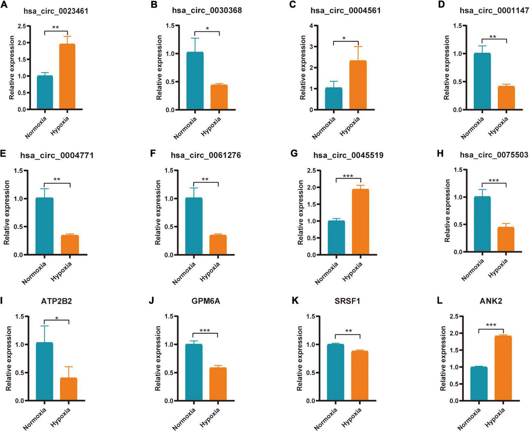 According to the manufacturer’s protocol, total RNA was isolated using FastPure® Cell/Tissue Total RNA Isolation Kit V2 (Vazyme, Nanjing, China), and the mRNA and circRNA cDNAs were synthesized with Hifair® II 1st Strand cDNA Synthesis Kit (gDNA digester plus) (Ye Sen, Shanghai, China). The qRT-PCR reactions were carried out in the Bio-Rad CFX96 Real-time PCR Detection System, using Hieff UNICON® Universal Blue qPCR SYBR Green Master Mix (Ye Sen, Shanghai, China). GAPDH was used as the reference genes and the relative fold change was evaluated by the method of 2–ΔΔCt. All primers were presented in Supplementary File 3. Comparison between the two groups was performed by independent sample T test. P < 0.05 was considered statistically significant.
