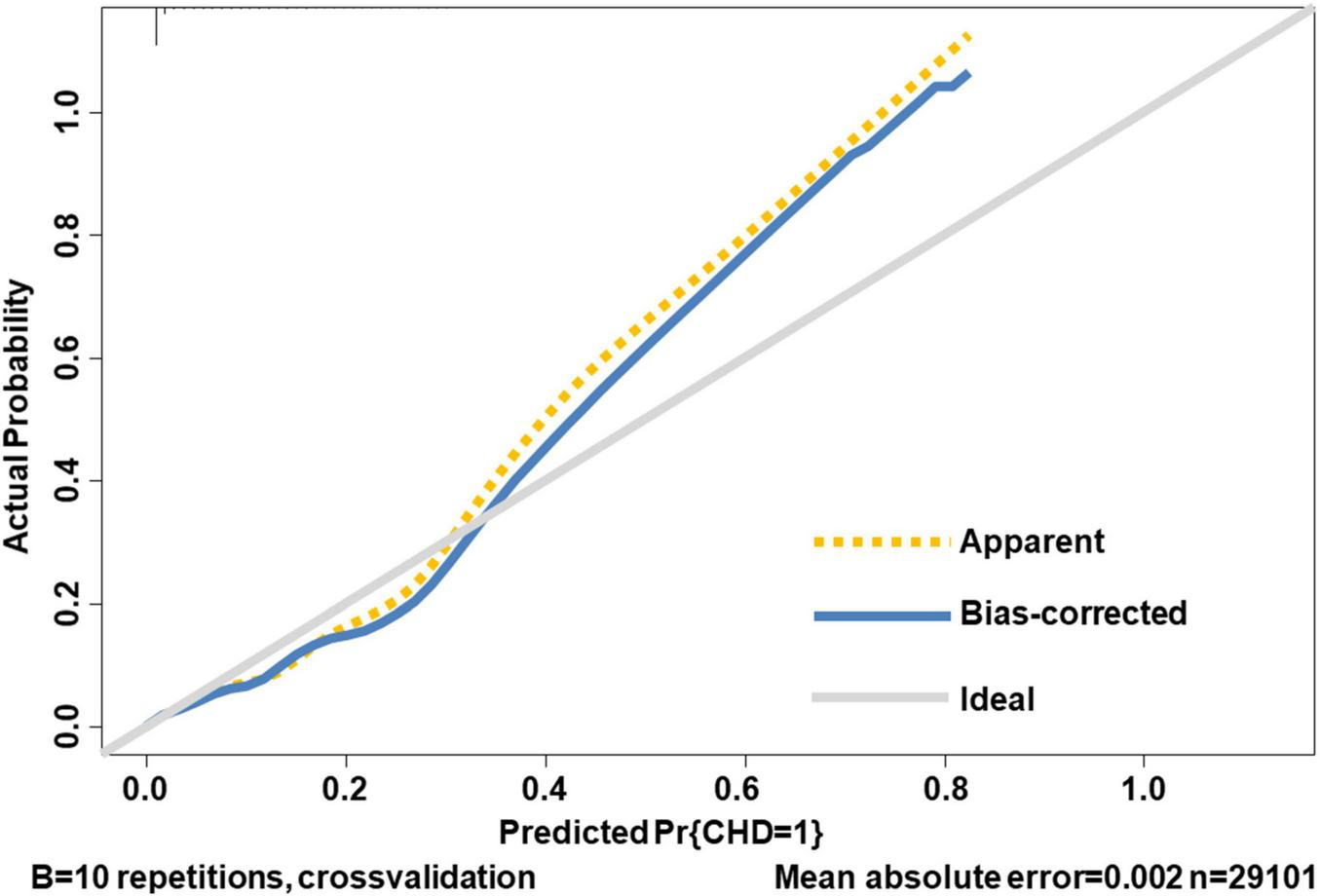 Congenital heart disease is complex in its etiology, although much evidence revealed its genetic causes (9, 10), and genetic defects were not detected in many CHD patients. Therefore, non-genetic factors should still be well considered. In recent years, substantial epidemiological evidence has demonstrated that non-genetic factors such as social determinants of health and adverse healthy lifestyle also contribute to abnormal cardiovascular development in fetuses, leading to cardiovascular malformation. The dominant factors of CHD could be divided into six main categories, namely (1) sociodemographic factors, including parental age (11, 12), household annual income and education level (13); (2) adverse lifestyle (14); (3) maternal diseases, including pre-pregnancy diabetes (15) and fever (16); (4) environmental factors such as secondhand smoke exposure (17) and environmental pollution (18); (5) supplements such as folic acid and multivitamin (19); and (6) mode of conception (20). Previous research mainly focused on the association between limited predictors and the risk of CHD, and some conclusions involving maternal fever (16, 21), maternal folic acid, and multivitamin supplementation (19, 22, 23) have been inconsistent. Moreover, the assessment in most of the prior studies was based on data from a single or limited number of medical institutions and was not internally or externally validated, which may have influenced the generalizability and robustness of the results. To the best of our knowledge, no study has been reported on the combined effect of the above factors on the risk of offspring CHD till present. Multicenter collaboration, rigorous study design, and adequate validation are important elements in the effort to develop a reliable prediction tool for offspring CHD based on multiple factors.