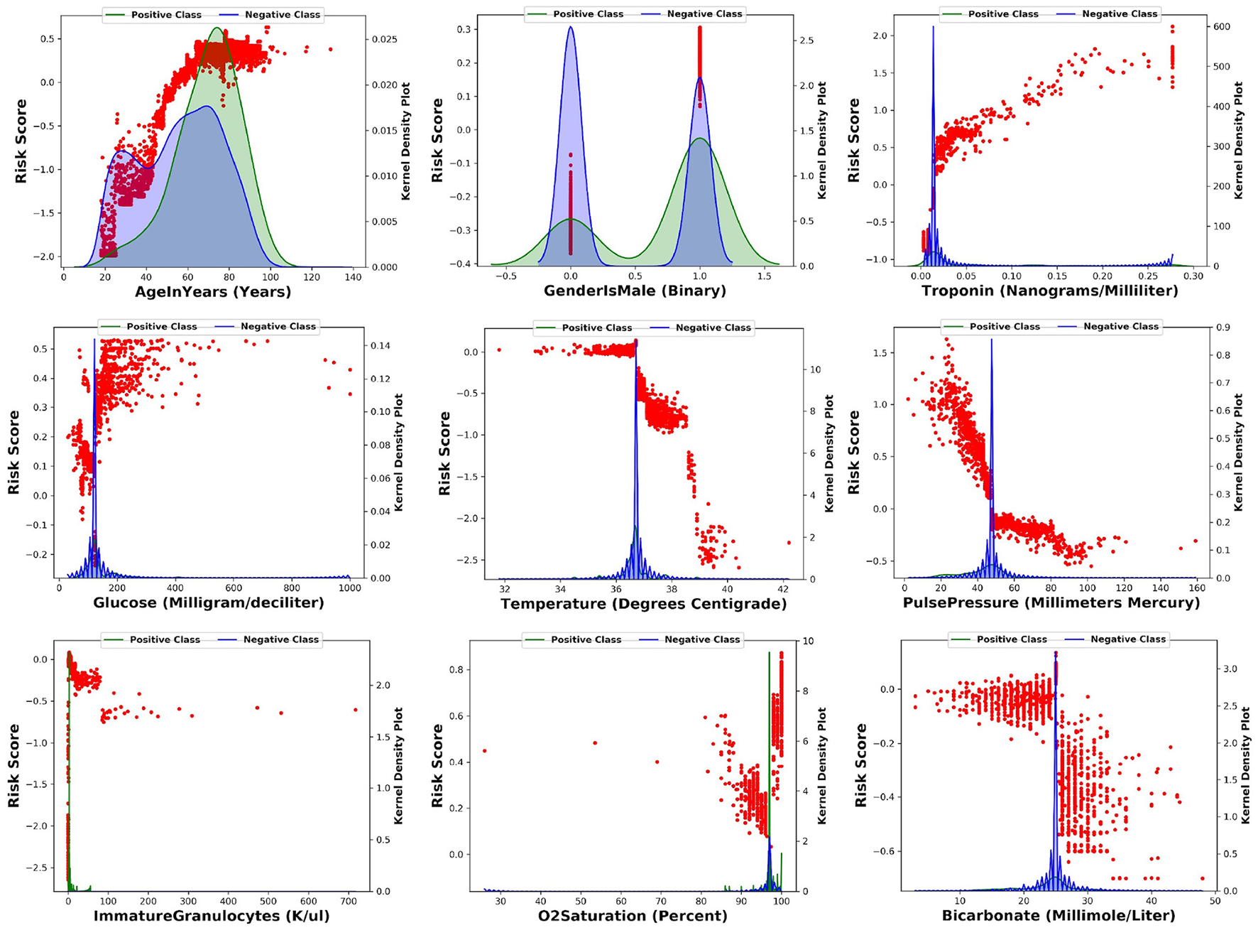To identify the model that can achieve both high classification performance and high interpretability, we evaluated LR and three different types of machine learning models, including XGB, multiple layer perceptron (MLP) (14), and temporal convolutional network (TCN) (15). For each model, we ran extensive hyperparameter search to maximize the AUC score on the validation set. The rationale of evaluating these models and the detailed hyperparameter search are described in Section 3 in the Supplementary Material. The optimal validation AUC corresponding of the optimal hyperparameter setting of each model is in Table 6. The XGB model consisting of 500 decision trees of depth 2 with learning rate 0.1 achieved the highest validation AUC score of 0.88.