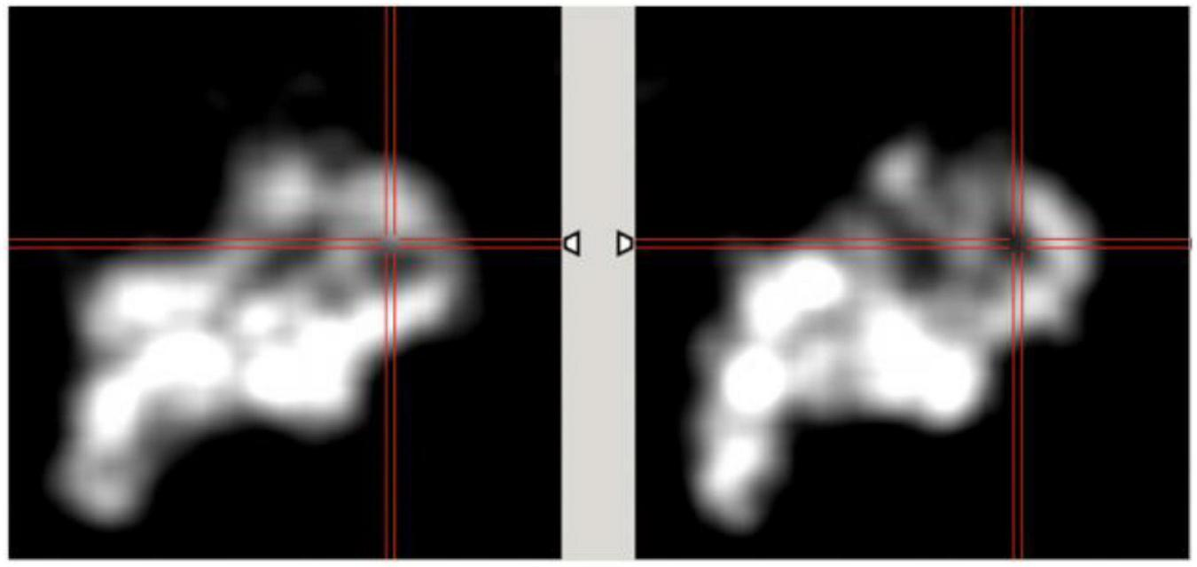 The scattered correction was implemented in the projections with double energy window. In our reconstruction, we have not incorporated regularization explicitly. However, the use of basis functions in the reconstruction provided some regularization in time (40).