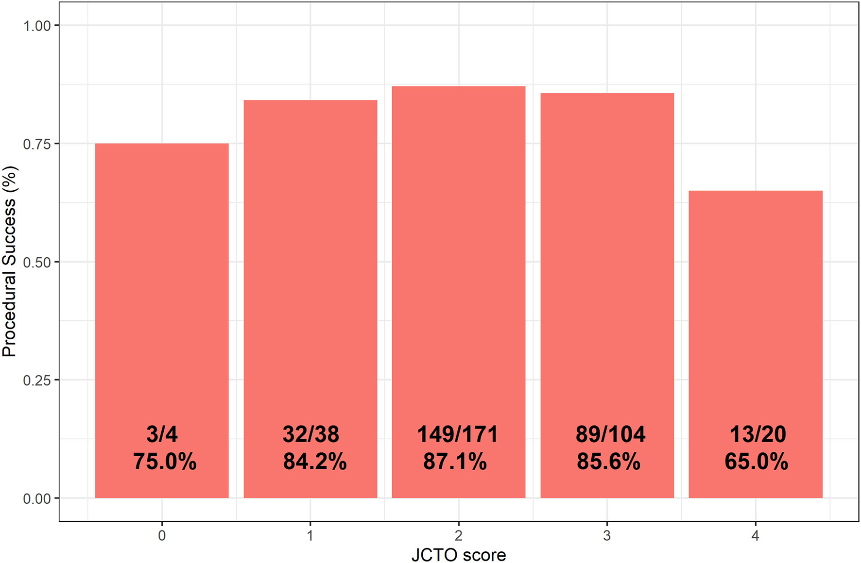 | Anterograde wire escalation, n (%) | 55 (69.6%) | 218 (84.8%) | 26 (60.5%) | 36 (81.8%) | ||