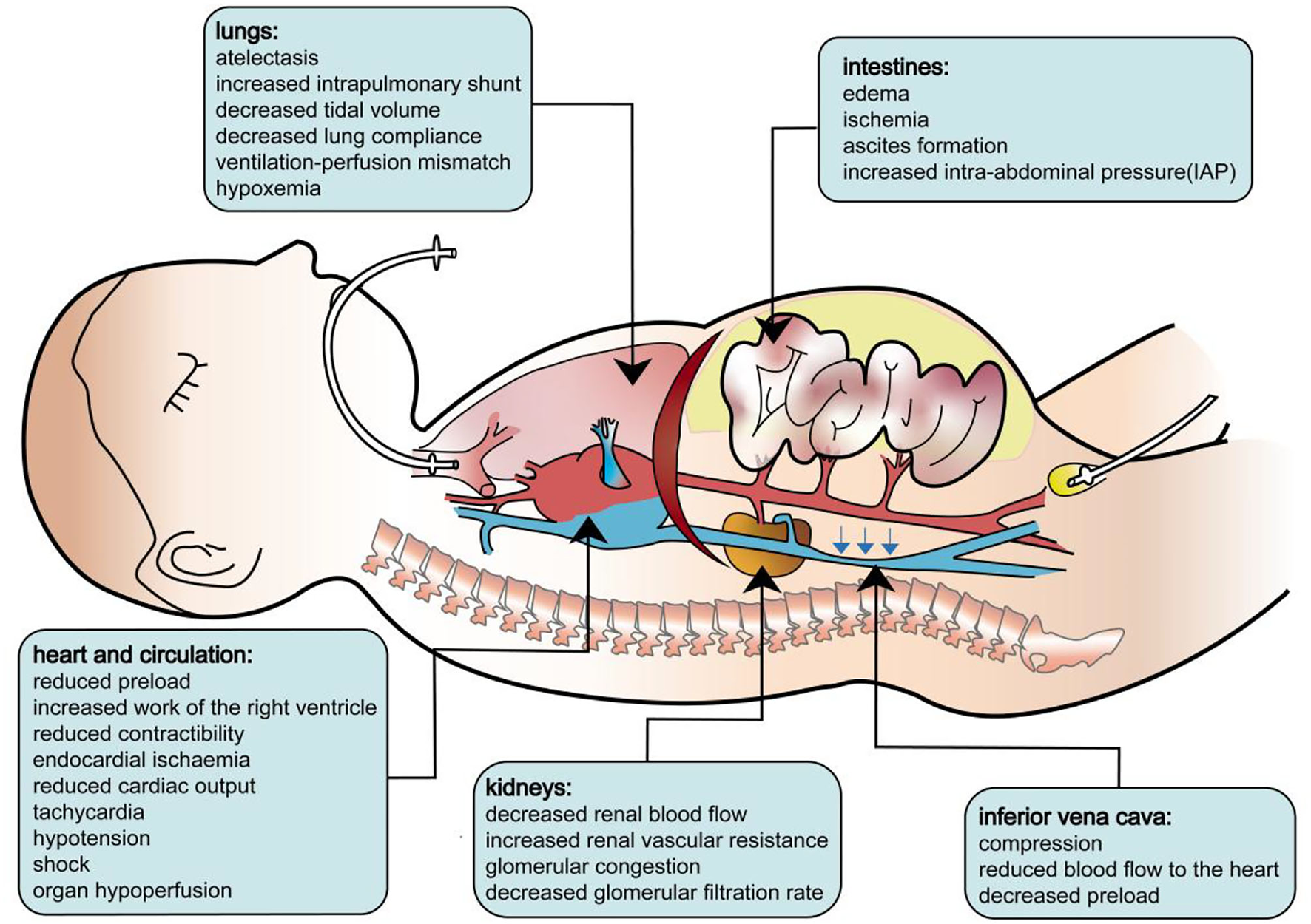 Pathophysiology of abdominal compartment syndrome.