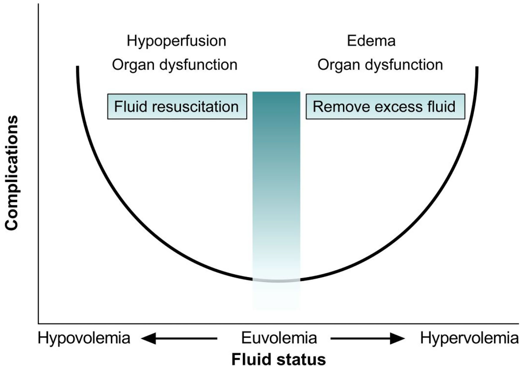 Relation between fluid volume status and complications.