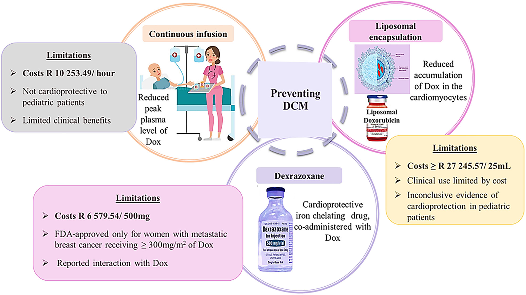 Schematic presentation of preventative strategies of doxorubicin-induced cardiomyopathy. Image adapted from dreamstine.com.