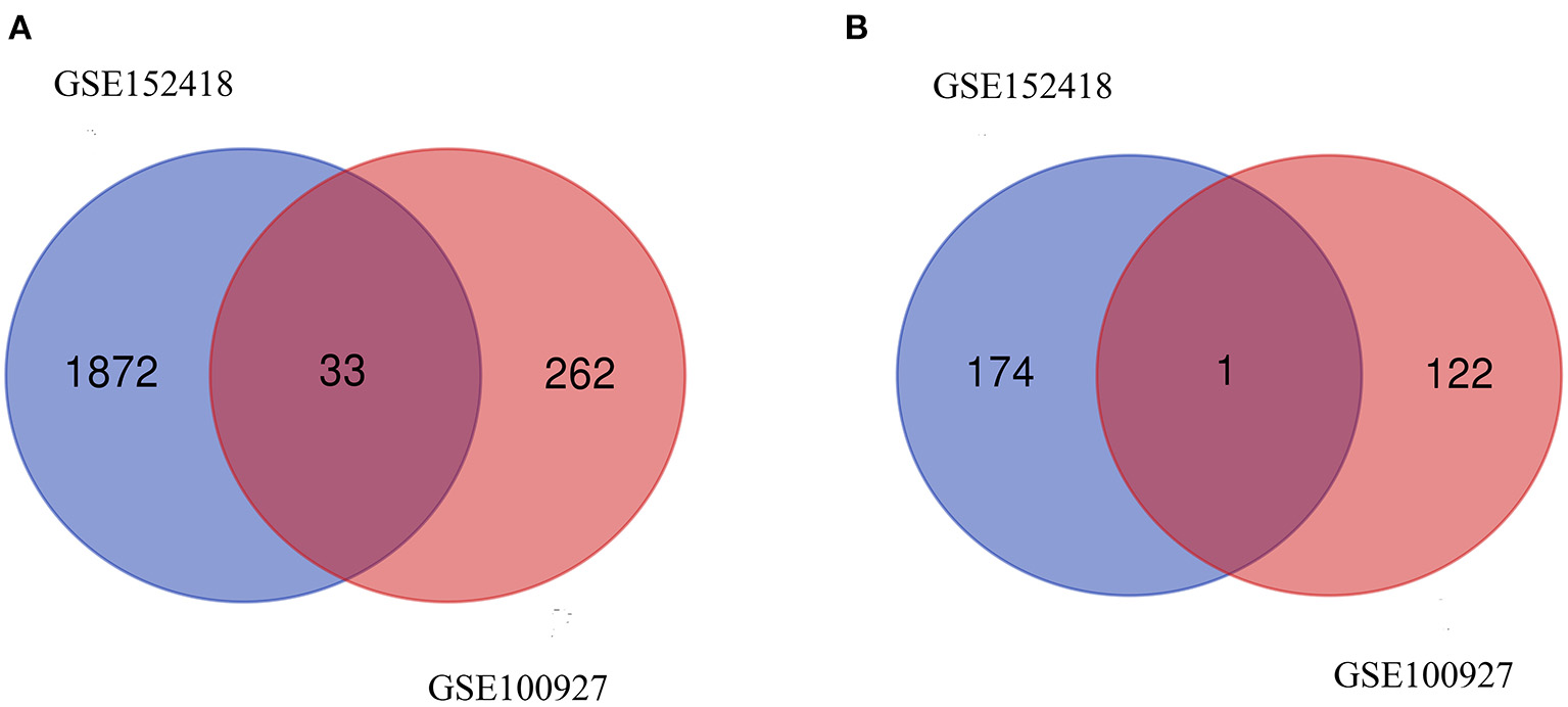 The LIMMA package was used to detect the DEGs between atherosclerotic patients and healthy control from the GSE100927 dataset, and the adjusted P-value and |log2FC| were calculated. Genes that met the cutoff criteria, adjusted P < 0.05 and |log2FC| more than or equal to 1.0, were considered as DEGs. Then the common genes of the GSE152418 and GSE100927 sets were identified by using the Venn diagram webtool (bioinformatics.psb.ugent.be/webtools/Venn/).