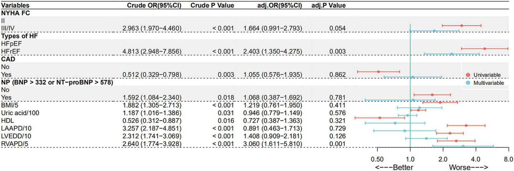 The remaining variables were interpolated using multiple imputations before entering the multivariable model for analysis. Missing data was defined as the absence of both values concurrently for variables with the same clinical significance, such as BNP and NT-proBNP. Biomarker levels below the detection limit were set to half that level, while those above the detection limit were set to the upper limit level.