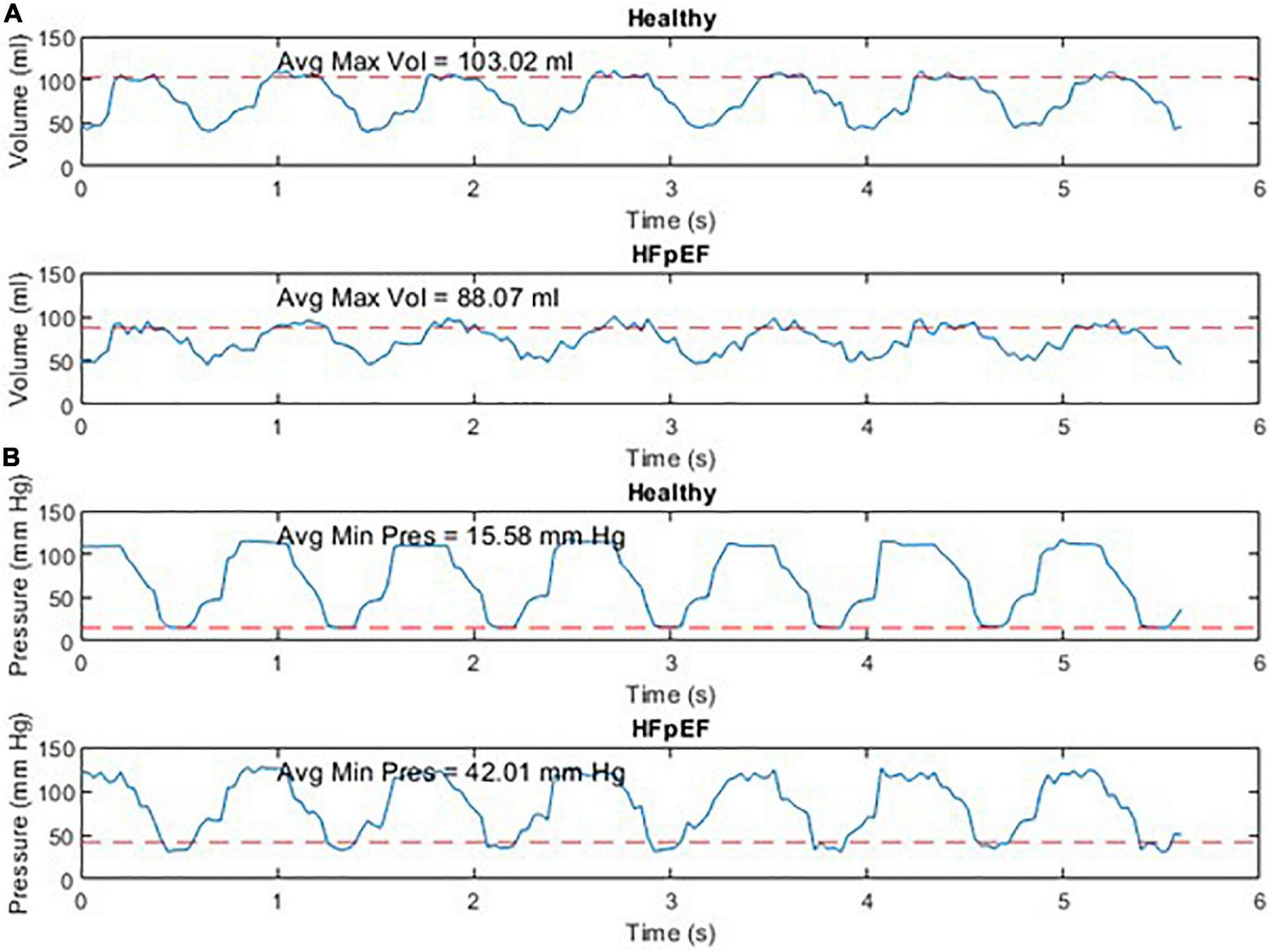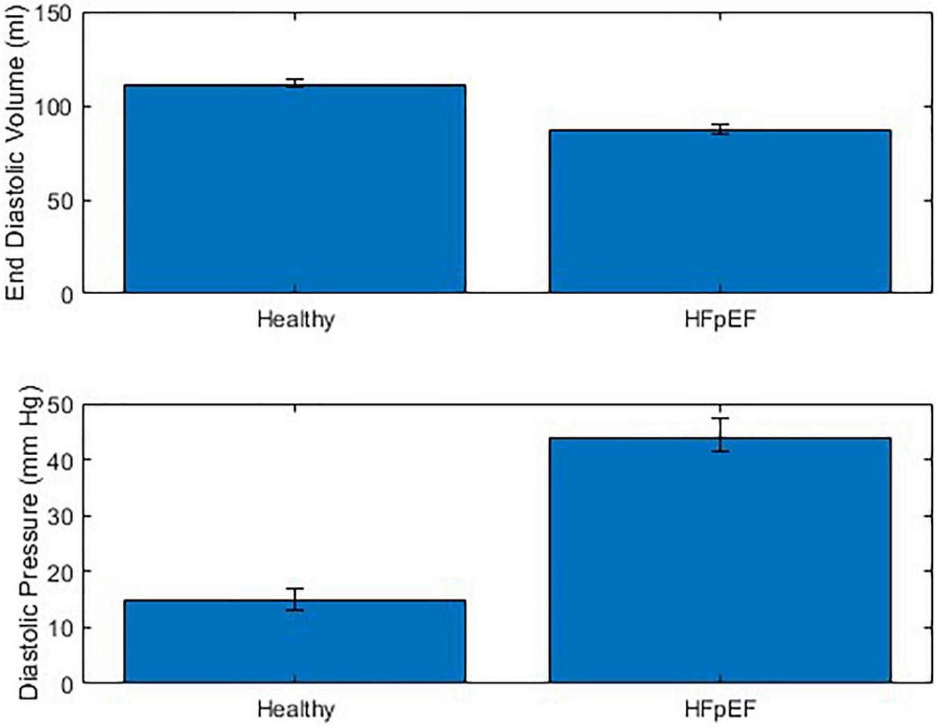 A further limitation is the inability to adequately model the heterogenous population of HFpEF patients. Future work in this space would need to more accurately model the peripheral impedance of patients and perhaps more extensively model the cardiovascular system.