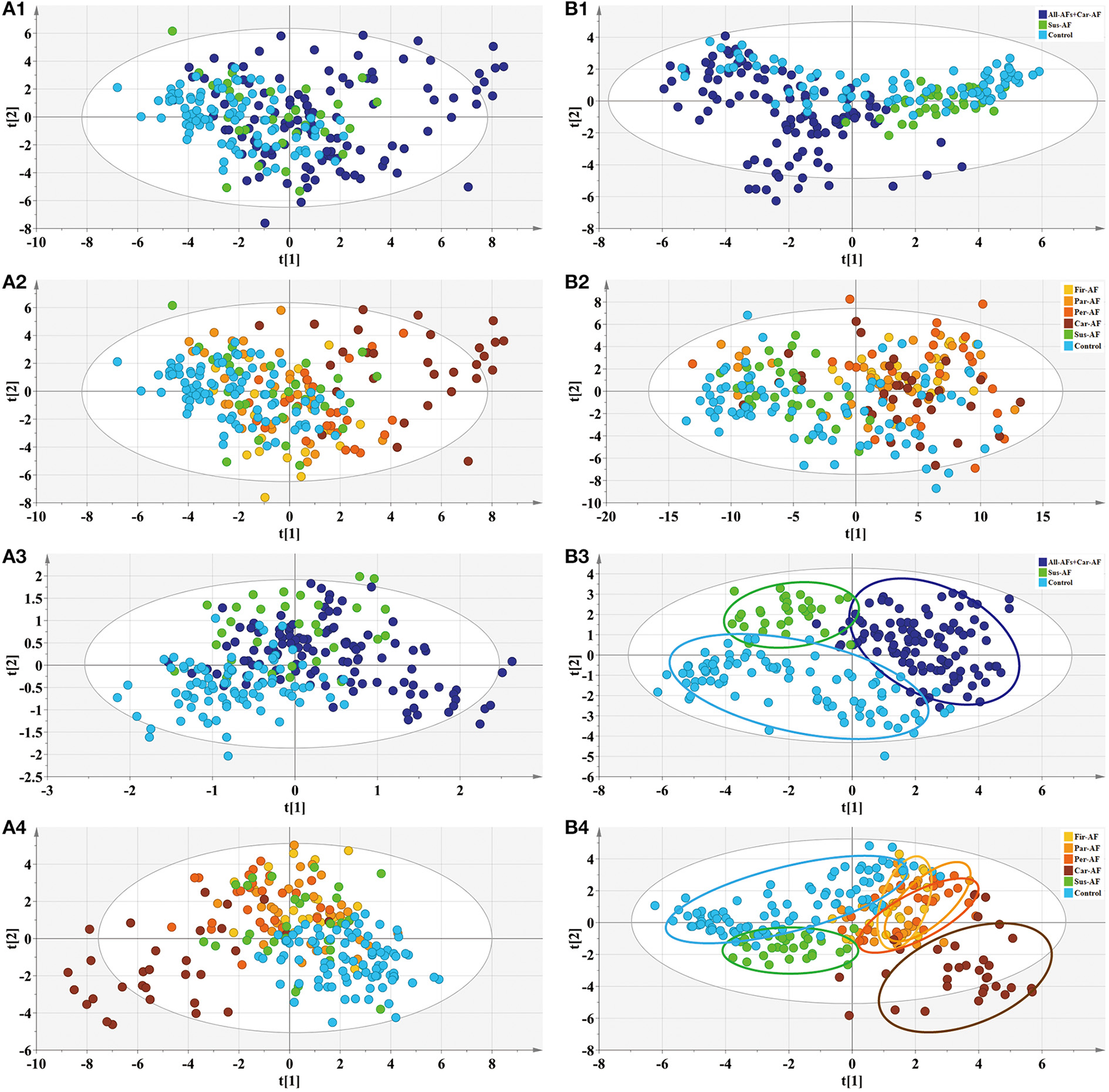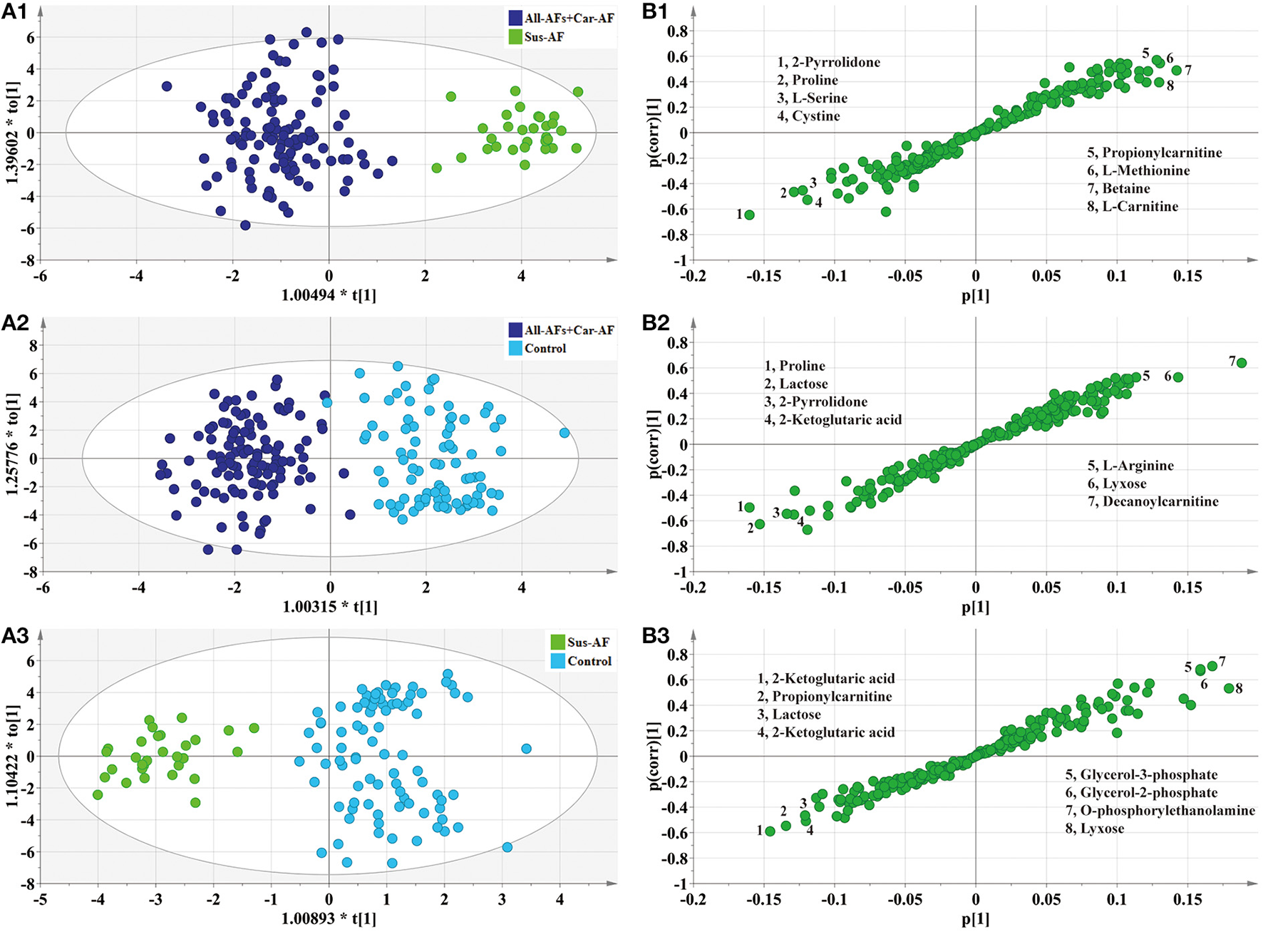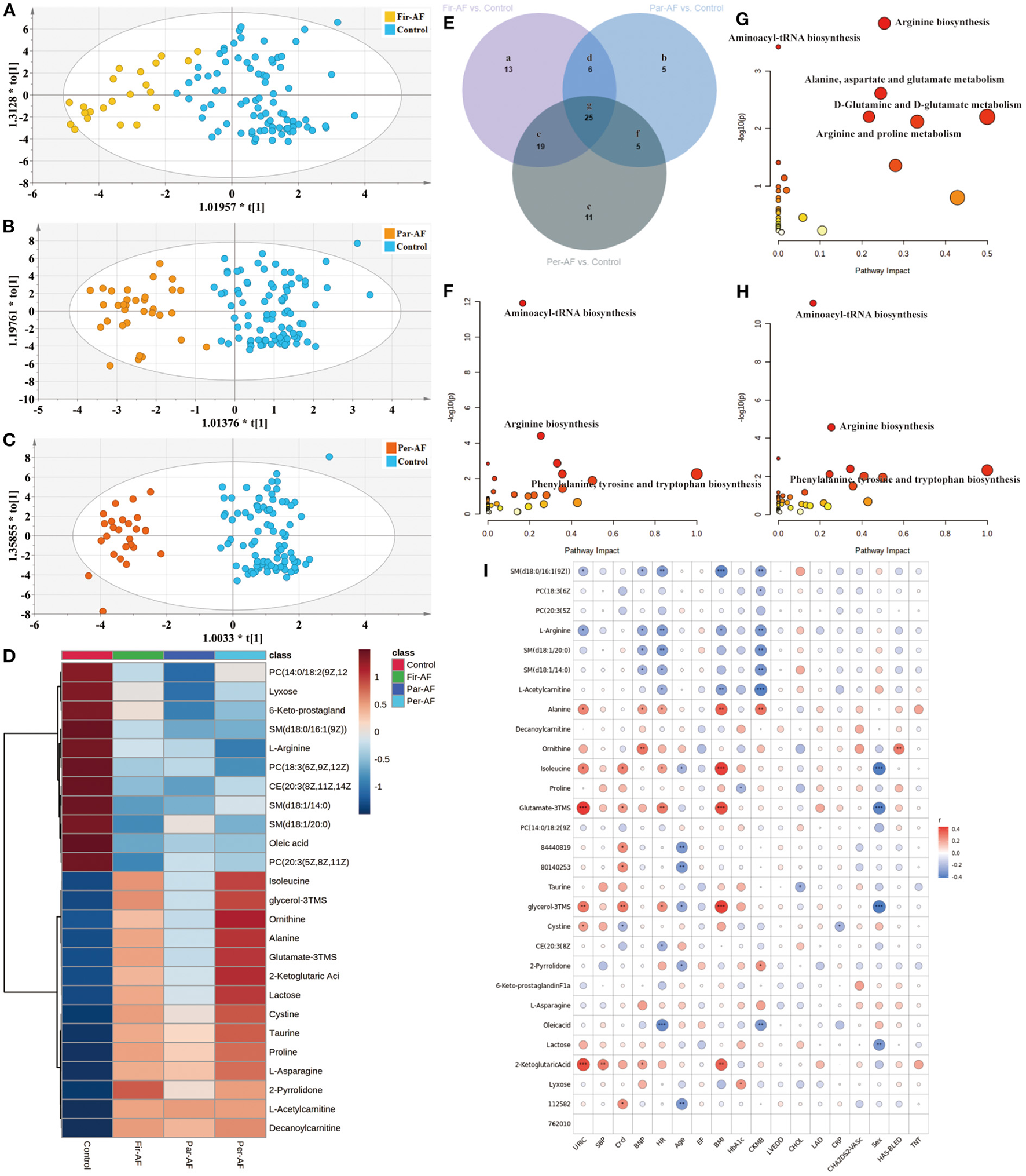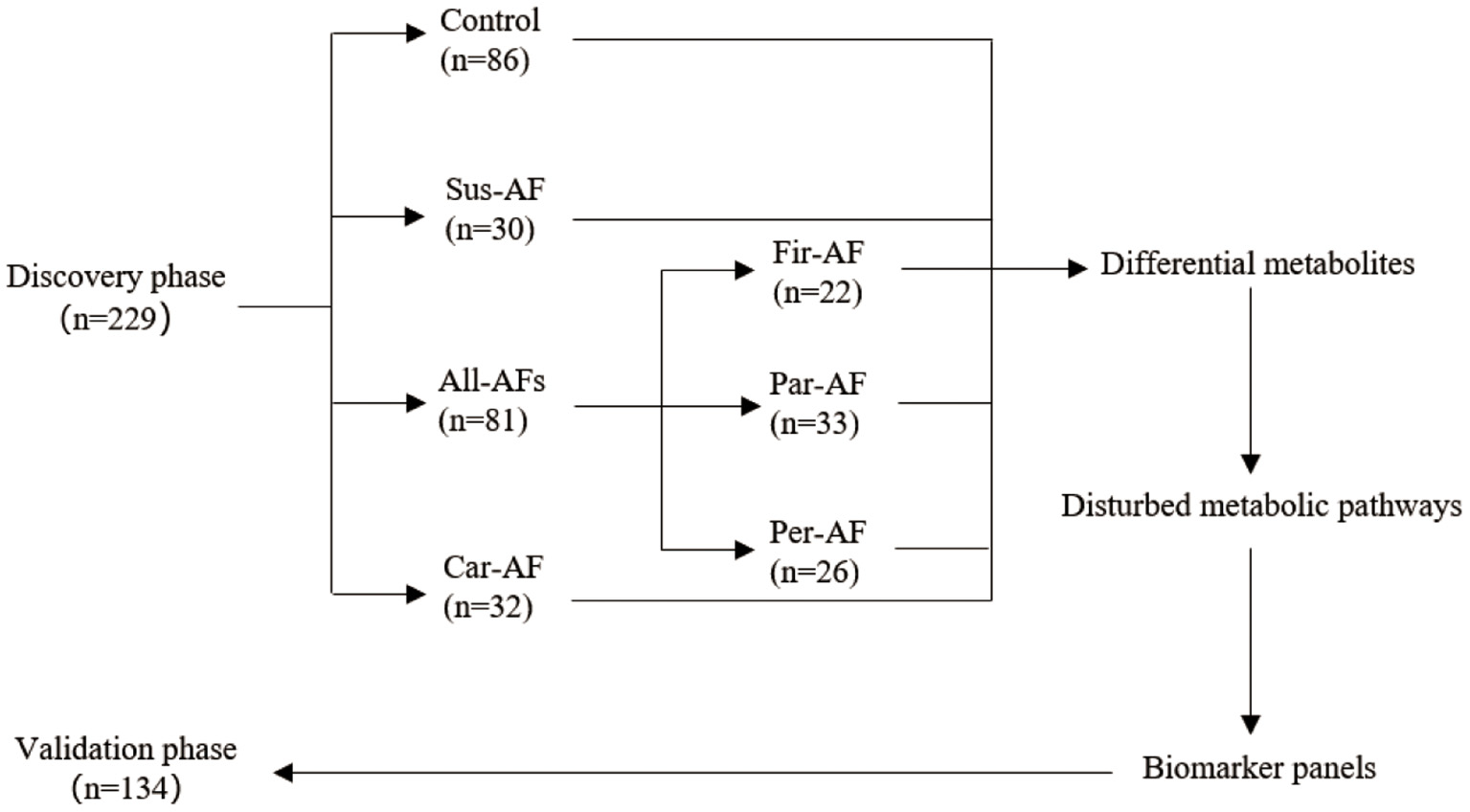 By investigating disturbed metabolic pathways, we could evaluate the diagnostic value of biomarkers based on metabolomics for different types of AF.