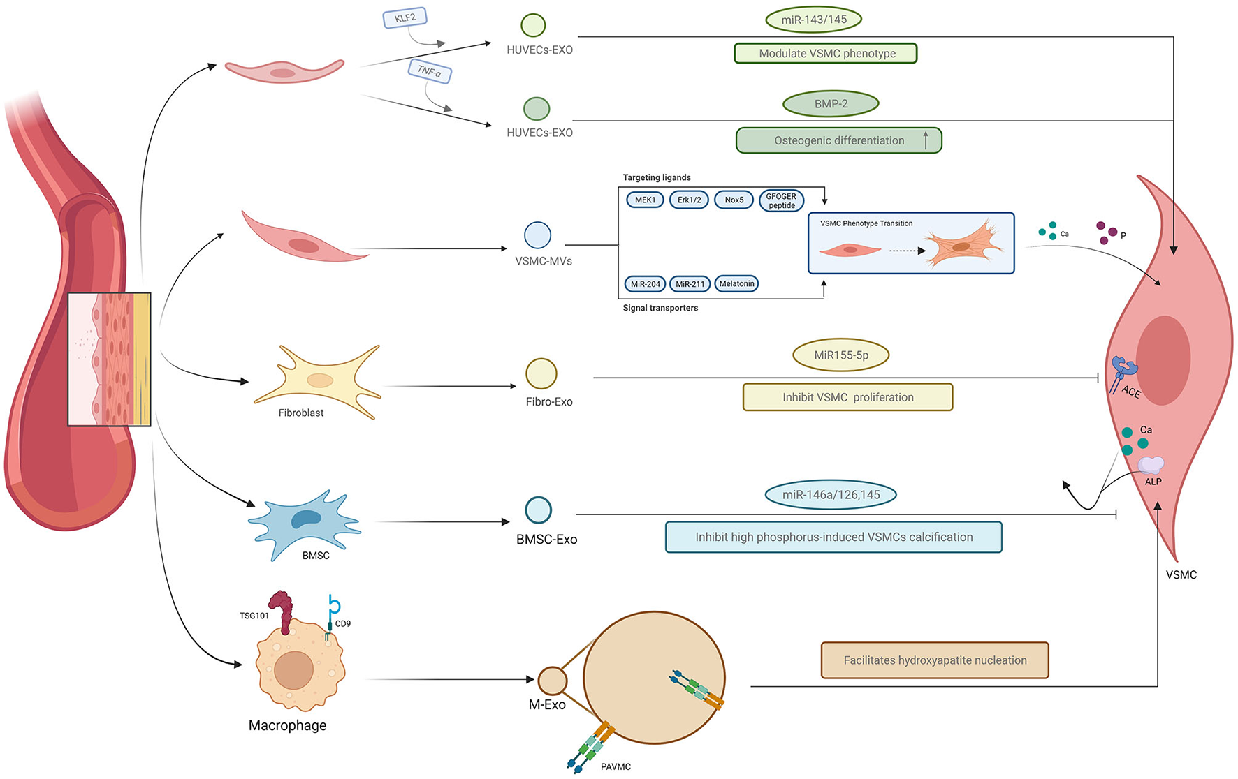 Role of exosomes in mediating vascular calcification in vascular wall microenvironment.