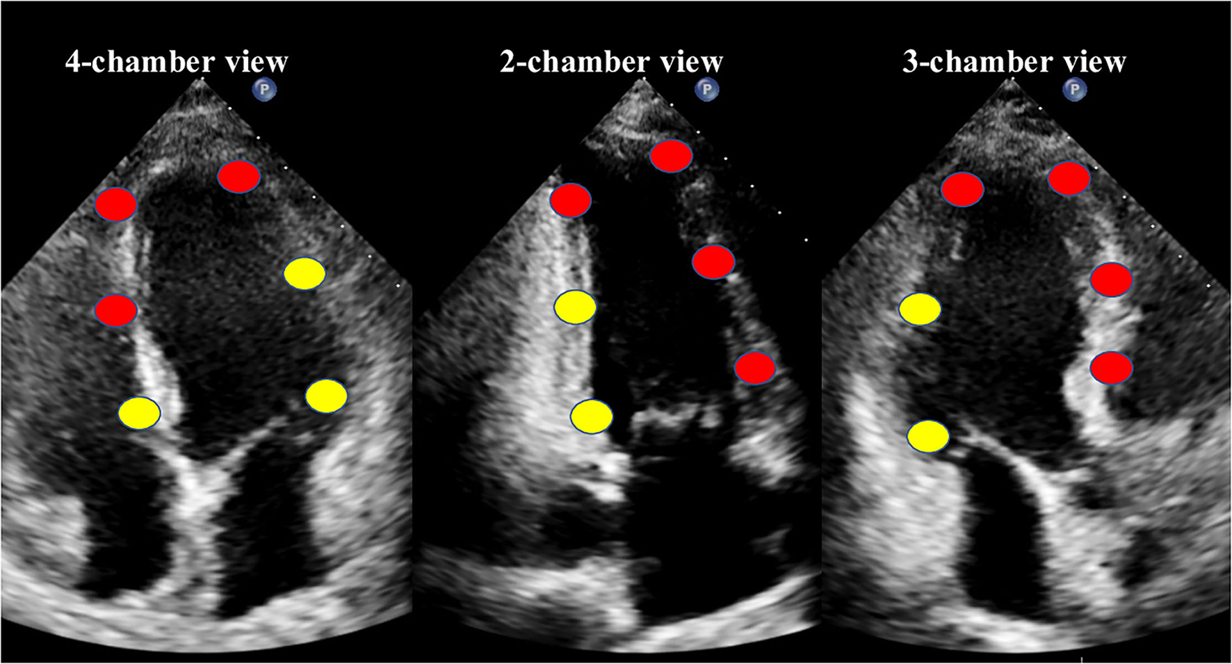 The LV global longitudinal strain (GLS) and MW indices were quantified using the vendor-specific module (EchoPAC version 203 software, GE Medical Systems, Horten, Norway). GLS was measured using two-dimensional speckle tracking echocardiography by manually tracing the LV endocardial border. The LS values from each of the 17 LV segments from four-, two-, and three-apical views were averaged to calculate LV GLS.