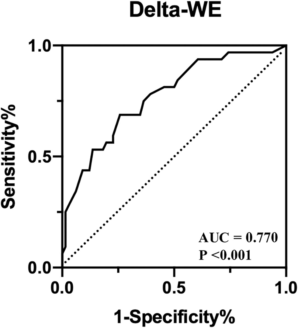 The values of culprit regional MW [including work index-LAD (WI-LAD), constructive work-LAD (CW-LAD), wasted work-LAD (WW-LAD), and work efficiency-LAD (WE-LAD)] and non-culprit regional MW (including WI-nonLAD, CW-nonLAD, WW-nonLAD, and WE-nonLAD) were obtained as the average of the segments belonging to the LAD or non-LAD territory (11 segments for the LAD, and 7 segments for the non-LAD; Figure 1) (18). The absolute differences of the MW indices were calculated as the values of non-culprit regional MW minus the values of culprit regional MW and noted as delta-WI, delta-CW, delta-WW, and delta-WE.
