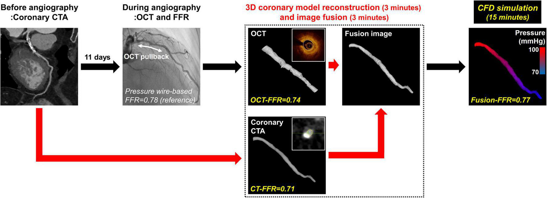 fractional flow reserve (FFR), coronary computed tomography angiography (coronary CTA), optical coherence tomography (OCT), fusion image, computational fluid dynamics (CFD)