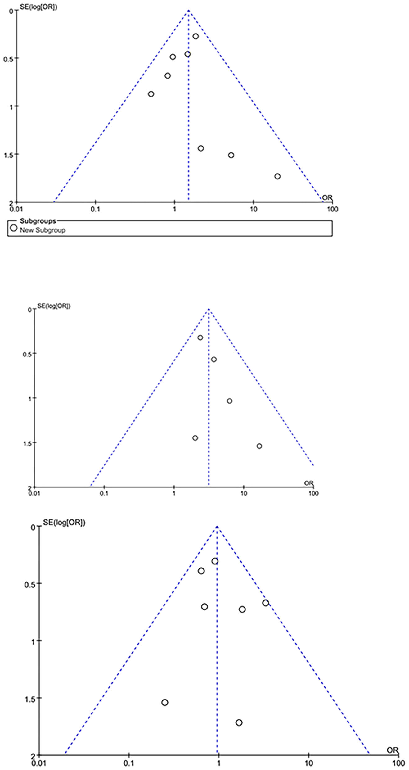 For subgroup analysis, studies only reporting patients undergoing aortic surgery (Table 1) were pooled, no significant difference was observed in neurological dysfunction between both group [(odds ratio, 1.44; 95% CI, (0.95–2.17); P = 0.08; I2 = 0)]. For leave-one out analysis for sensitivity analysis with primary outcomes of our study, as is shown in Tables 4, 5, the heterogeneity is low and the pooled results are robust. The publication bias was evaluated by funnel plot. Neurological dysfunction, cannulation-related complications and early mortality outcome was shown in Figure 5. For cannulation-related complications and early mortality, the plot appeared symmetrical, indicating that no publication bias has occurred in the study. However, for neurological dysfunction, the plot appeared asymmetrical, indicating some publication bias.